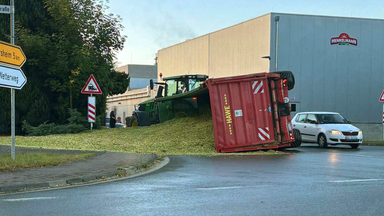 Volkmarsen – Am Freitagmorgen kam es in Volkmarsen zu einem Verkehrsunfall mit einem landwirtschaftlichen Gespann. Auf dem Weg zu einer Biogasanlage kippte auf der Arolser Straße, beim Abbiegen in den Wetterweg, der Anhänger des Traktors um. Die Ladung, bestehend aus Häckselgut aus der Maisernte, verteilte sich dabei auf der Fahrbahn.