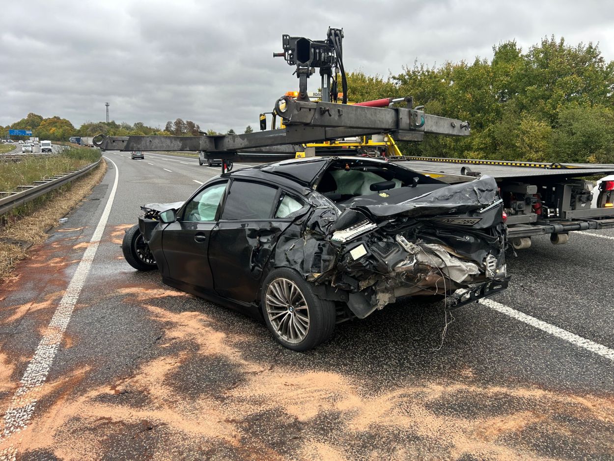 Aktuell (Stand 12 Uhr) laufen noch Reinigungsarbeiten an der Unfallstelle. In Fahrtrichtung Norden ist derzeit nur eine Fahrspur frei, wodurch es zu deutlichen Verkehrsbehinderungen und Rückstau kommt.