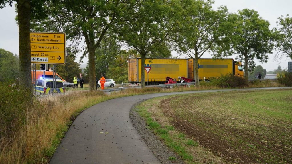 Nach ersten Erkenntnissen war eine 58-jährige Frau aus dem Landkreis Kassel mit ihrem VW von Niederlistingen in Richtung Oberlistingen unterwegs, als es im Kreuzungsbereich zur Kollision mit einem Sattelzug kam. Der Lkw war auf der B7 von Warburg in Richtung Calden unterwegs.