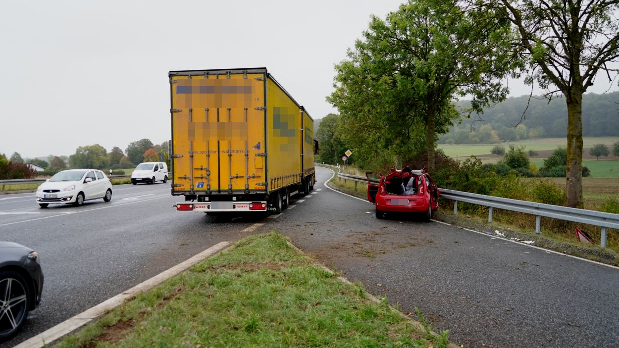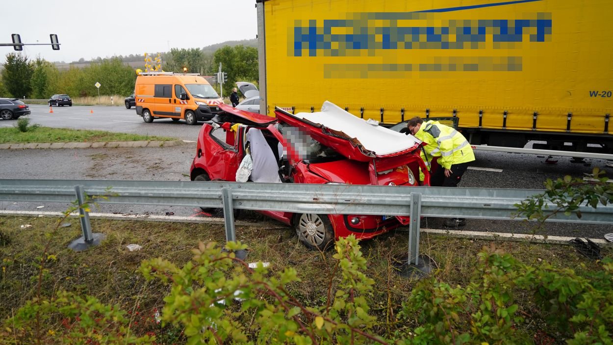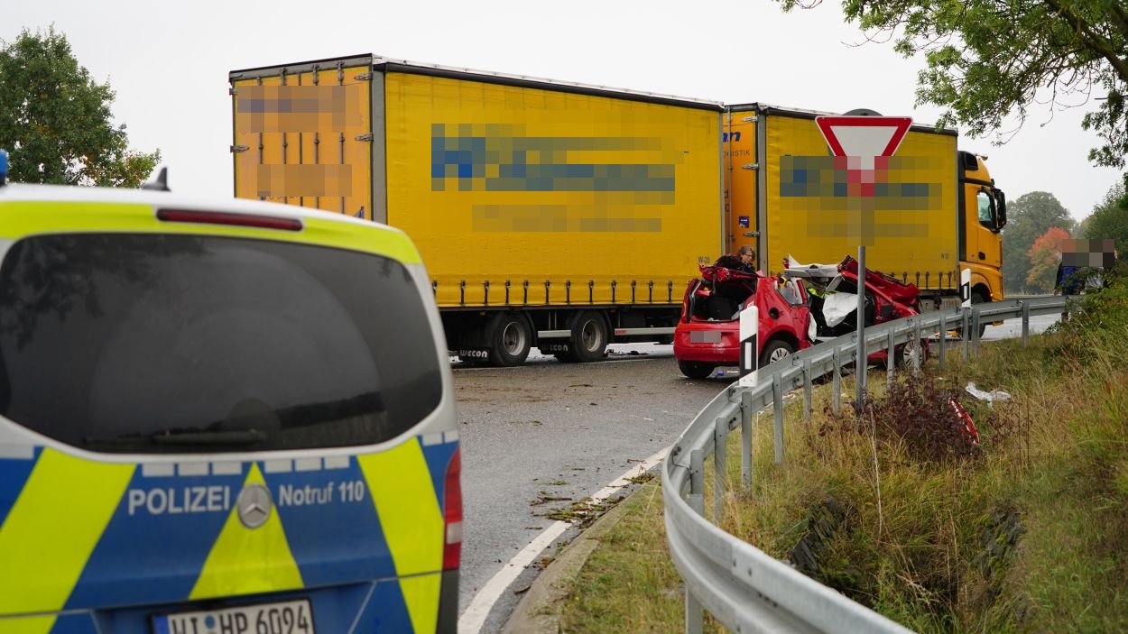 Durch den Zusammenstoß wurde der 63-jährige Beifahrer der Frau schwer eingeklemmt und musste von den Feuerwehren aus Breuna und Listingen mit hydraulischem Rettungsgerät aus dem Fahrzeug befreit werden. Der Mann erlitt lebensgefährliche Verletzungen, die Fahrerin wurde ebenfalls verletzt. Beide kamen nach der Erstversorgung durch den Rettungsdienst in ein Krankenhaus. Der Lkw-Fahrer blieb unverletzt.