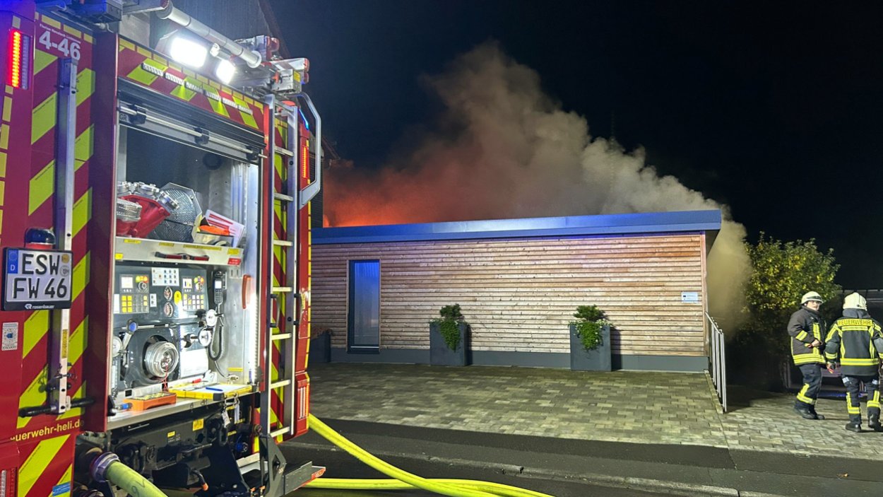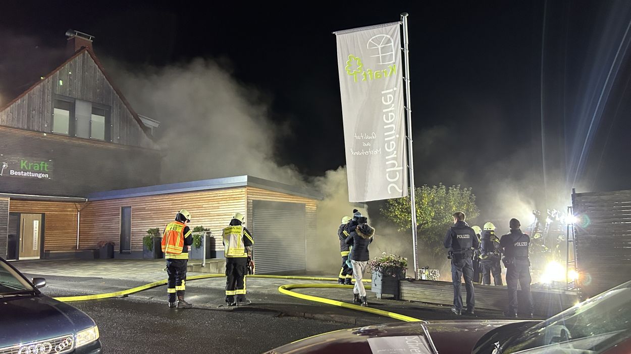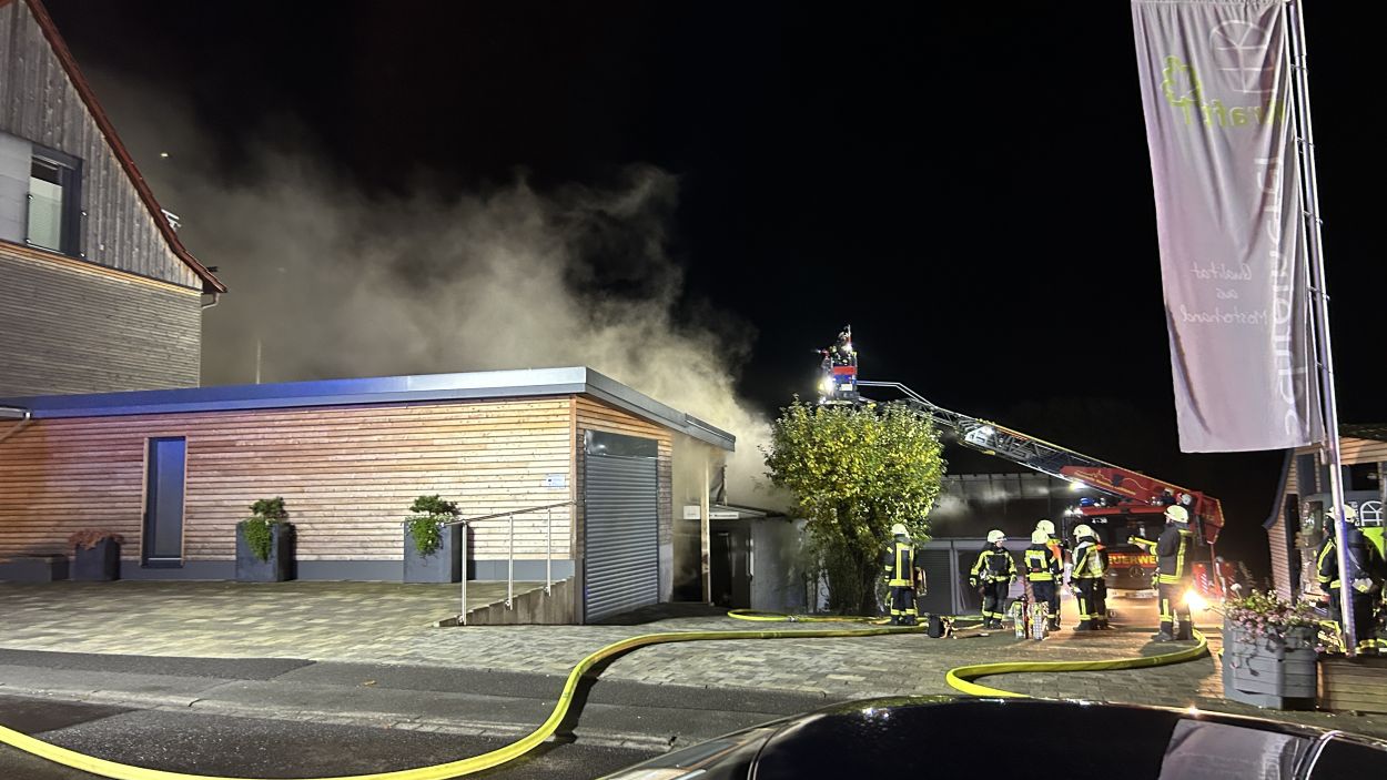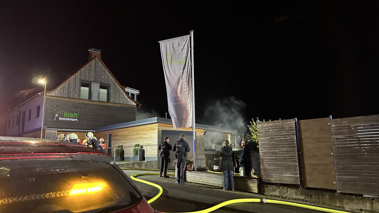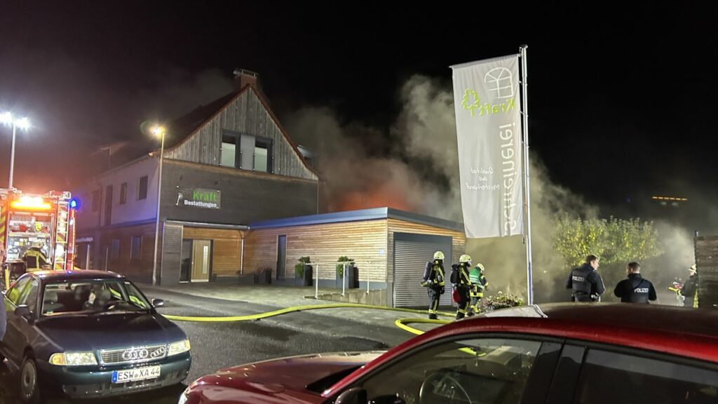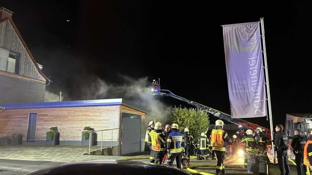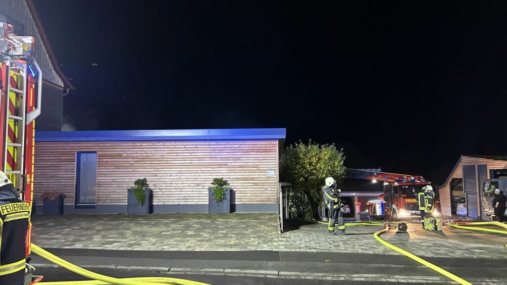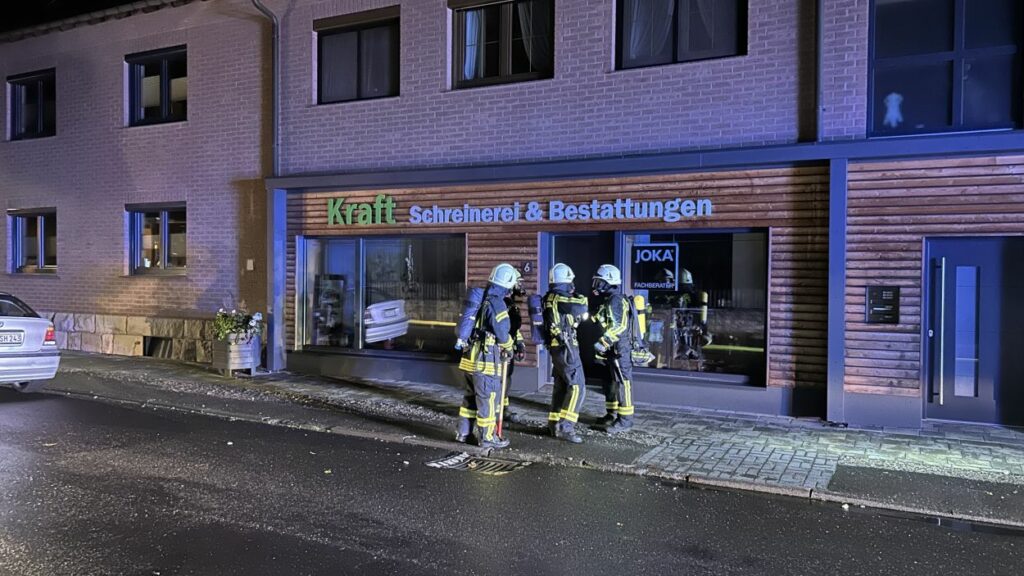 Hessisch Lichtenau – Am Freitagabend gegen 20.30 Uhr wurde die Feuerwehr zu einem Brand in einer Schreinerei mit integriertem Bestattungsunternehmen in der Bergstraße alarmiert. Eine aufmerksame Anwohnerin hatte das Feuer bemerkt und sofort die Einsatzkräfte verständigt. Beim Eintreffen der Feuerwehr war das Gelände stark verraucht, der Feuerschein nur schwach sichtbar. Die anfängliche Erkundung dauerte daher länger, bis das Feuer lokalisiert werden konnte. Im hinteren Bereich der Schreinerei stand eine Werkstatt schließlich im Vollbrand. Die komplexe Bauweise des Gebäudes erschwerte die Brandbekämpfung zusätzlich. Dank des schnellen Eingreifens der Feuerwehr konnte ein Übergreifen der Flammen auf ein angrenzendes Wohnhaus verhindert werden.