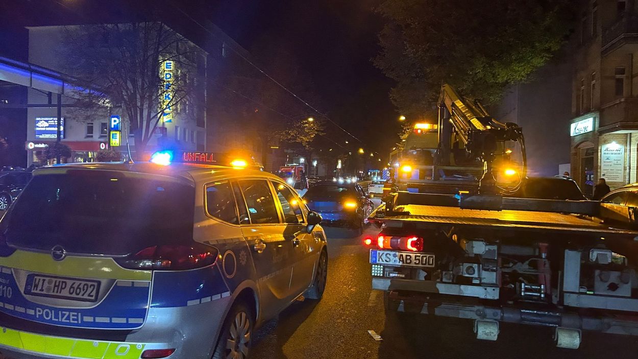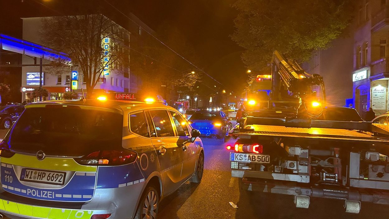 Der Unfall ereignete sich gegen 22:30 Uhr in Höhe der Beethovenstraße. Nach ersten Ermittlungen waren ein 23-jähriger Fahrer aus Lohfelden und ein 21-Jähriger aus Guxhagen mit ihren Mercedes-AMG-Fahrzeugen stadteinwärts unterwegs. Zeugen berichteten, dass sich beide Pkw mit hoher Geschwindigkeit ein Rennen geliefert und dabei mehrfach die Fahrspuren gewechselt haben sollen. In Höhe der Beethovenstraße fuhr der 23-Jährige auf der linken Spur auf einen stehenden Opel auf, dessen Fahrerin nach links auf den Parkplatz eines Supermarktes abbiegen wollte und verkehrsbedingt warten musste. Durch die Wucht des Aufpralls wurde der Opel auf einen davorstehenden VW geschoben.