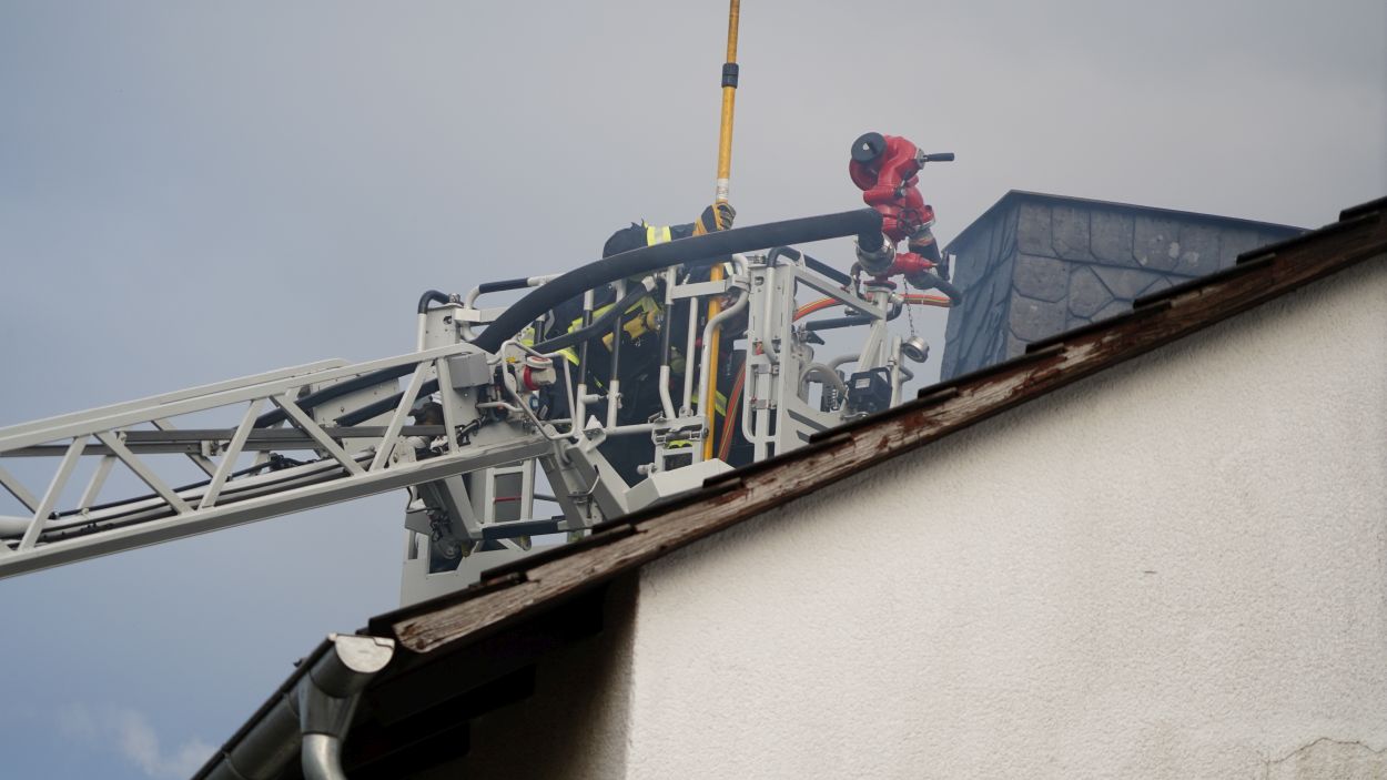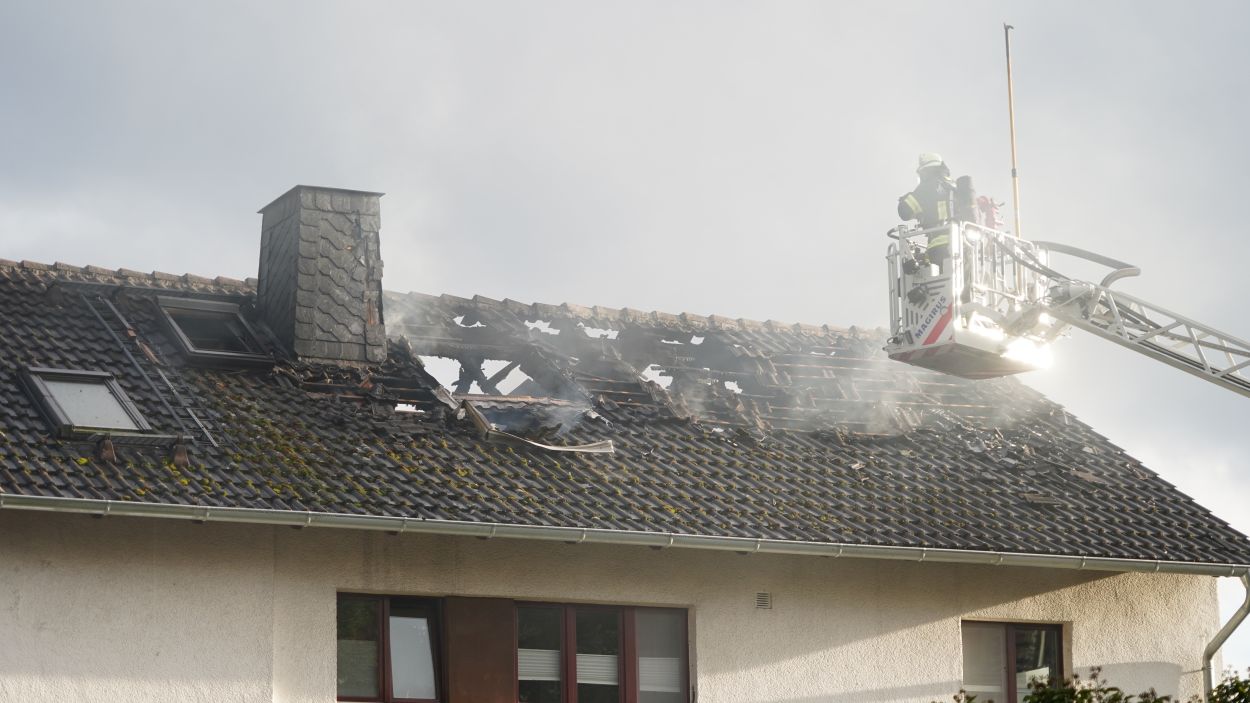 Die Nachlöscharbeiten gestalten sich schwierig: Um an versteckte Glutnester zu gelangen, muss die Dachhaut vollständig geöffnet werden. Einsatzleiter Sebastian Swoboda rechnete damit, dass der Einsatz noch bis etwa 19.30 Uhr andauern wird.