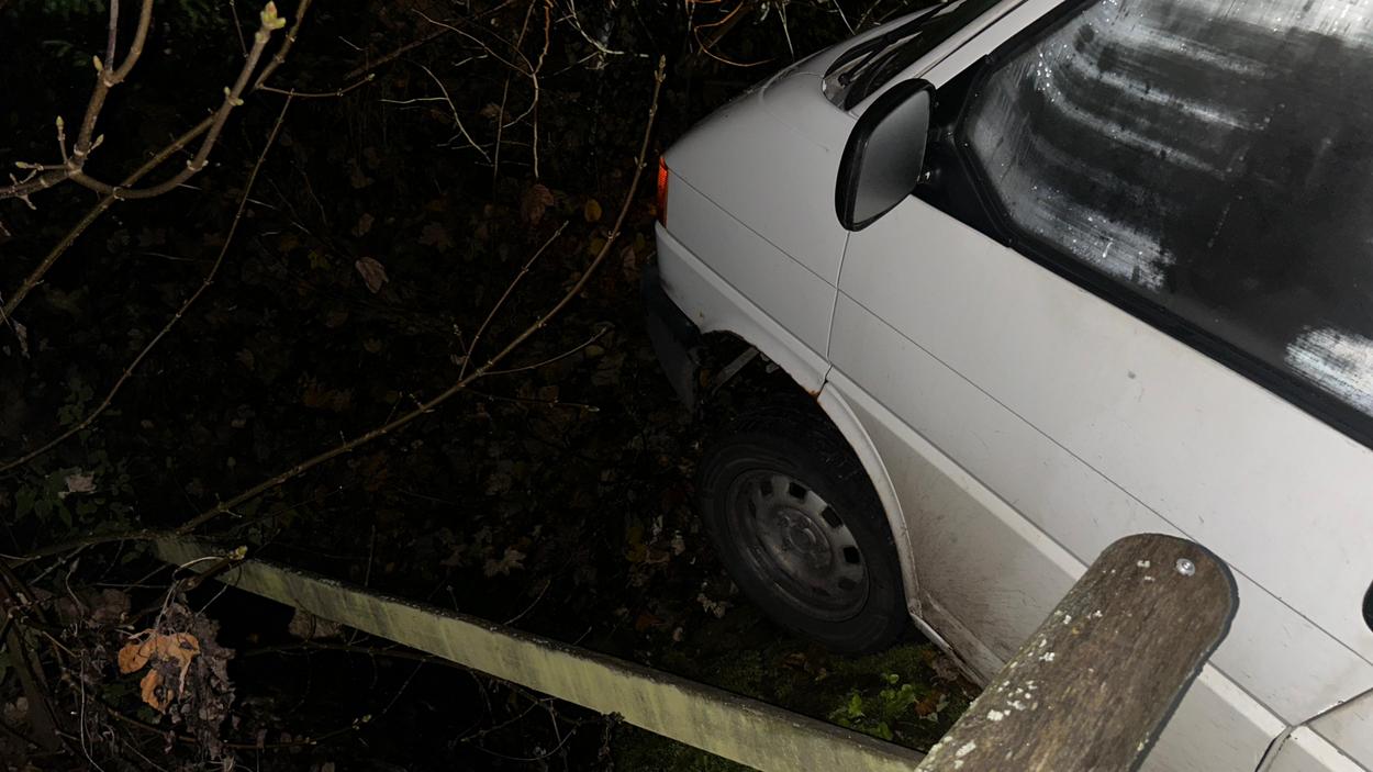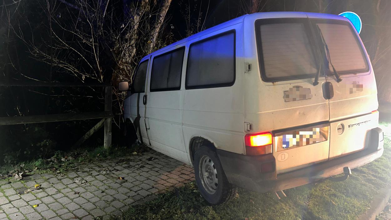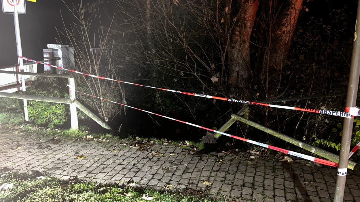 Beim Abbiegen in den Bovelidweg kam das Auto schließlich von der Fahrbahn ab, durchbrach ein Holzgeländer und blieb mit dem Motorblock in einem Graben stecken. Als der Unfallfahrer bemerkte, dass ein Zeuge den Notruf wählte, setzte er zur Flucht an – zu Fuß.