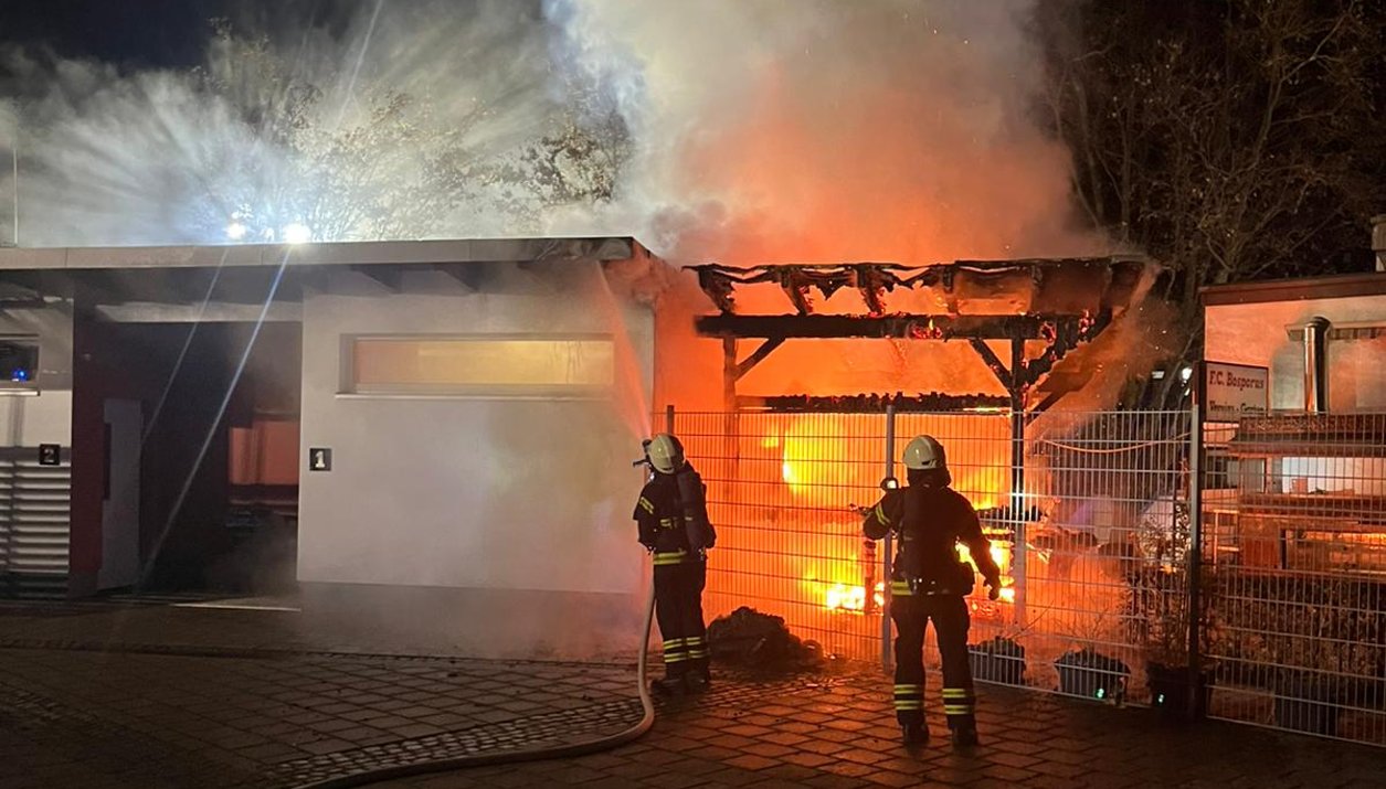 Beim Eintreffen der Einsatzkräfte stand der betroffene Anbau bereits in voller Ausdehnung in Flammen. Das Feuer drohte, auf die Umkleiden sowie das Dach des angrenzenden Gebäudes überzugreifen. Glücklicherweise befanden sich zum Zeitpunkt des Brandes keine Personen im Gebäude.