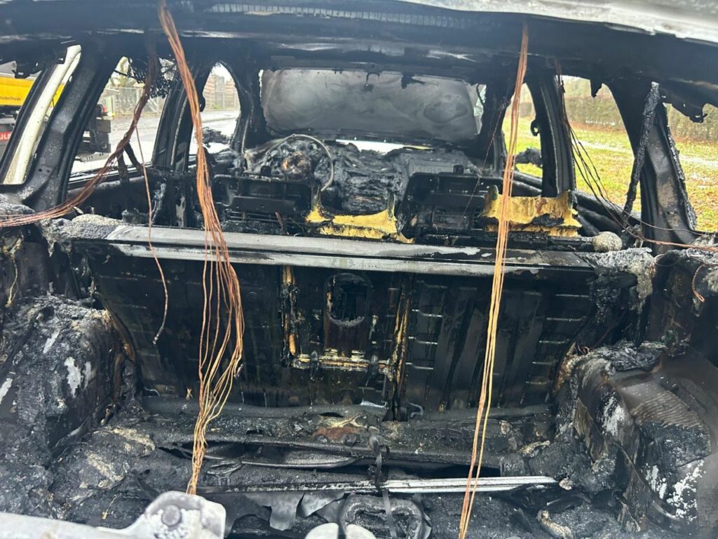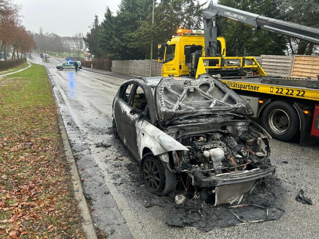Der Fahrer konnte das Auto rechtzeitig anhalten und unverletzt verlassen. Trotz des schnellen Einsatzes der Feuerwehr brannte der Seat komplett aus. Als Ursache wird nach ersten Erkenntnissen ein technischer Defekt vermutet.