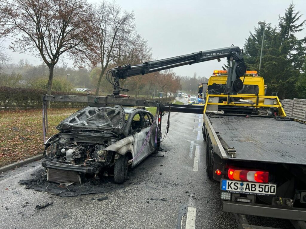 Kassel – Auf der Eugen-Richter-Straße in Kassel ist es am Montagmorgen zu einem Fahrzeugbrand gekommen. Gegen 8 Uhr bemerkte der 44-jährige Fahrer eines Seat in Höhe des Marbachswegs plötzlich starke Rauchentwicklung aus seinem Wagen. Kurz darauf geriet das Fahrzeug vollständig in Flammen.