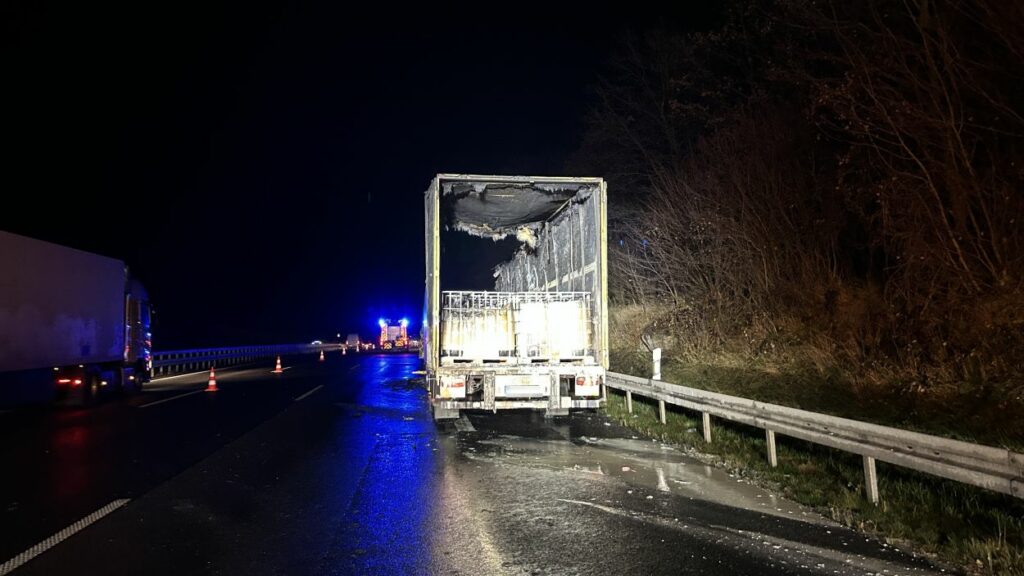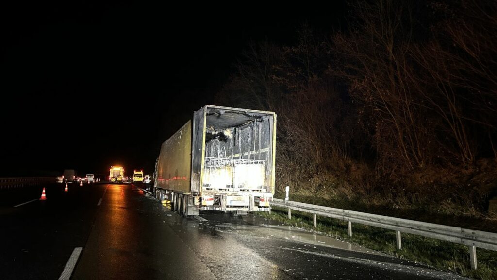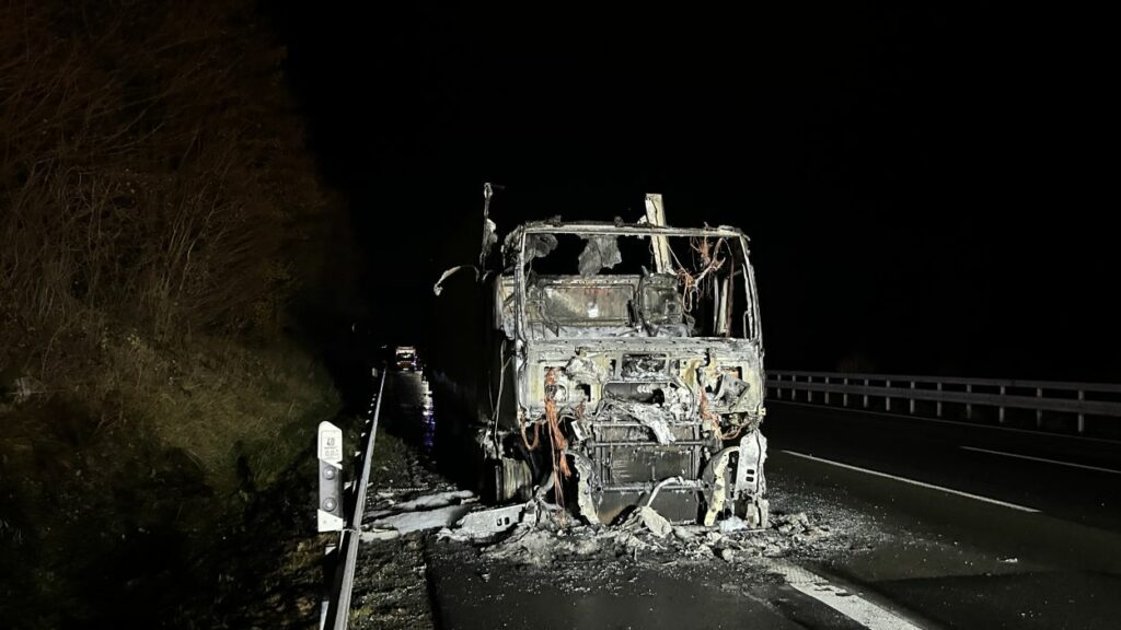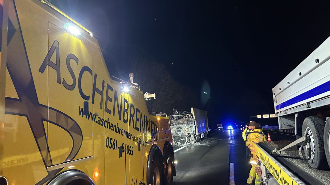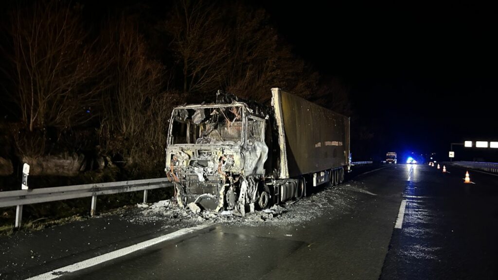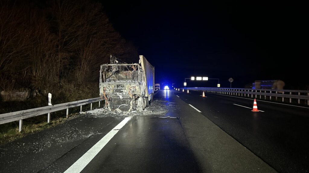 Im Anschluss wurde der ausgebrannte Sattelzug abtransportiert und die stark verschmutzte Fahrbahn gereinigt. Erst danach war eine Freigabe der Autobahn möglich.