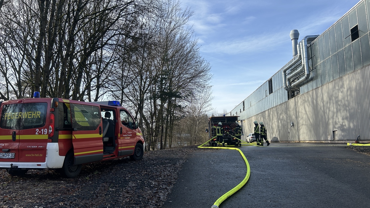 Noch während der laufenden Maßnahmen in Quentel erfolgte eine weitere Alarmierung. Die Feuerwehren der Kernstadt sowie aus Fürstenhagen wurden zu einer zunächst unklaren Rauchentwicklung in den Ortsteil Hirschhagen gerufen. Vor Ort stellte sich heraus, dass eine Anlage in einem Industriebetrieb in Brand geraten war.