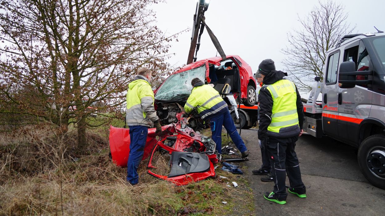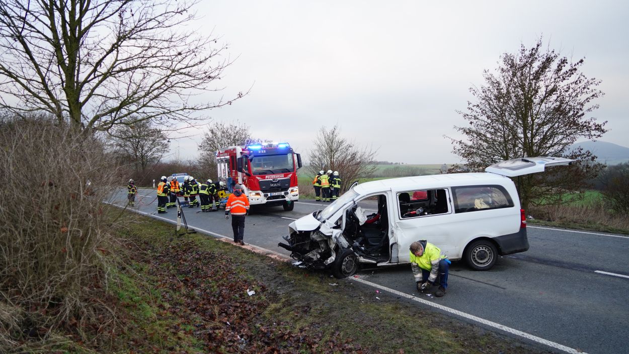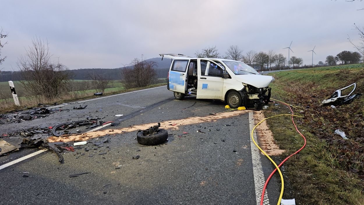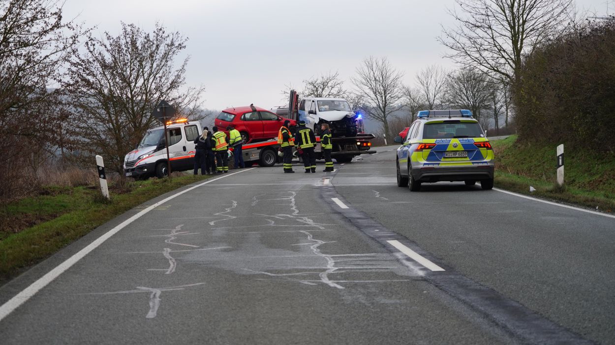 Eine zufällig vorbeifahrende Polizeistreife begann sofort mit ersten Rettungsmaßnahmen. Der 45-jährige Mann aus dem Landkreis Kassel erlitt jedoch so schwere Verletzungen, dass er noch an der Unfallstelle verstarb. Die Fahrerin des Mercedes wurde bei dem Zusammenstoß in ihrem Fahrzeug eingeklemmt und musste von der Feuerwehr mit schwerem Gerät befreit werden. Nach etwa 30 Minuten konnte sie dem Rettungsdienst übergeben werden. Sie wurde mit schweren, aber nicht lebensgefährlichen Verletzungen in ein Krankenhaus eingeliefert. Während der umfangreichen Rettungs- und Bergungsarbeiten blieb die L 3215 zwischen dem Abzweig zur B 450 und Schauenburg-Martinhagen mehrere Stunden voll gesperrt. Die Vollsperrung konnte gegen 11 Uhr aufgehoben werden. Beide beteiligten Fahrzeuge wurden sichergestellt. Zur Klärung der Unfallursache hat die Polizei die Ermittlungen aufgenommen, ein Gutachter wurde hinzugezogen. Rund 60 Einsatzkräfte von Feuerwehr, Rettungsdienst und Polizei waren vor Ort. Die Feuerwehr Bad Emstal wurde dabei durch die Feuerwehr Schauenburg-Martinhagen unterstützt. Aufgrund der belastenden Einsatzlage ist für die Einsatzkräfte am Abend eine Nachbesprechung mit psychologischer Betreuung vorgesehen.