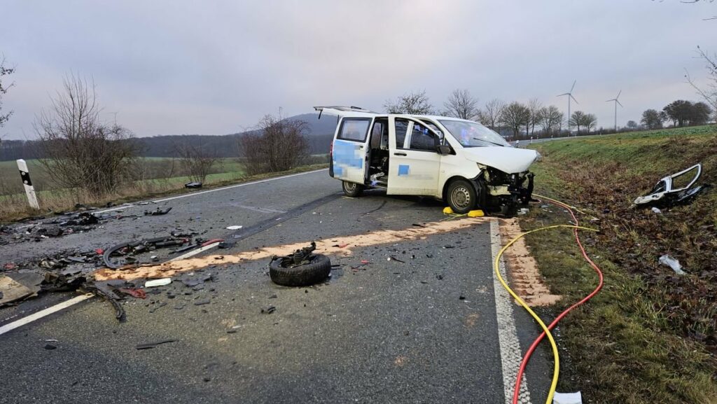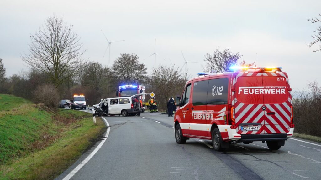 Bad Emstal – Auf der L 3215 bei Bad Emstal hat sich am Montagmorgen ein schwerer Verkehrsunfall mit tödlichem Ausgang ereignet. Nach Informationen der Polizei war ein 45-jähriger Autofahrer gegen 6.45 Uhr mit einem VW von Schauenburg-Martinhagen in Richtung B 450 unterwegs. In einer langgezogenen Linkskurve kam es aus bislang ungeklärter Ursache zu einem Frontalzusammenstoß mit einem entgegenkommenden Mercedes, der von einer 46-jährigen Frau gefahren wurde.
