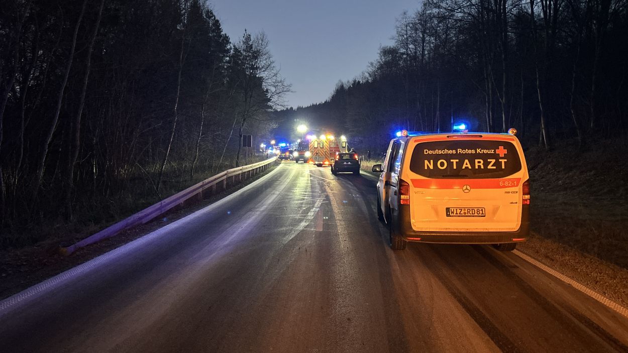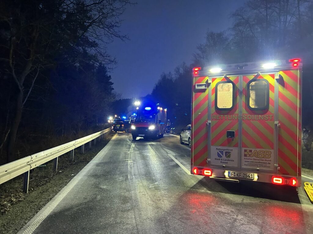 Bei dem Unfall wurden alle drei beteiligten Personen schwer verletzt. Eine Person erlitt lebensbedrohliche Verletzungen und musste noch an der Unfallstelle mehrfach reanimiert werden. Die Fahrerin des aus Richtung Kassel kommenden Pkw war in ihrem Fahrzeug eingeschlossen und musste von der Feuerwehr mit technischem Gerät befreit werden. Alle Verletzten wurden anschließend mit Rettungswagen in umliegende Krankenhäuser gebracht.