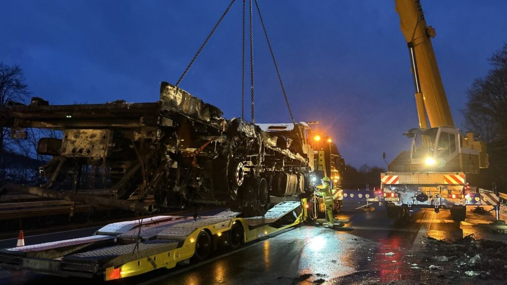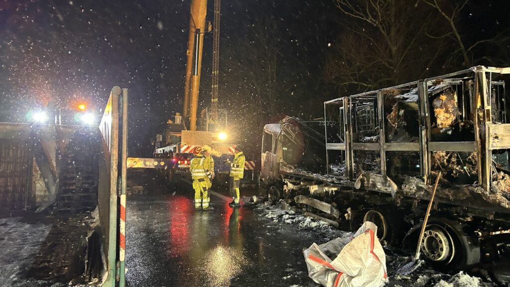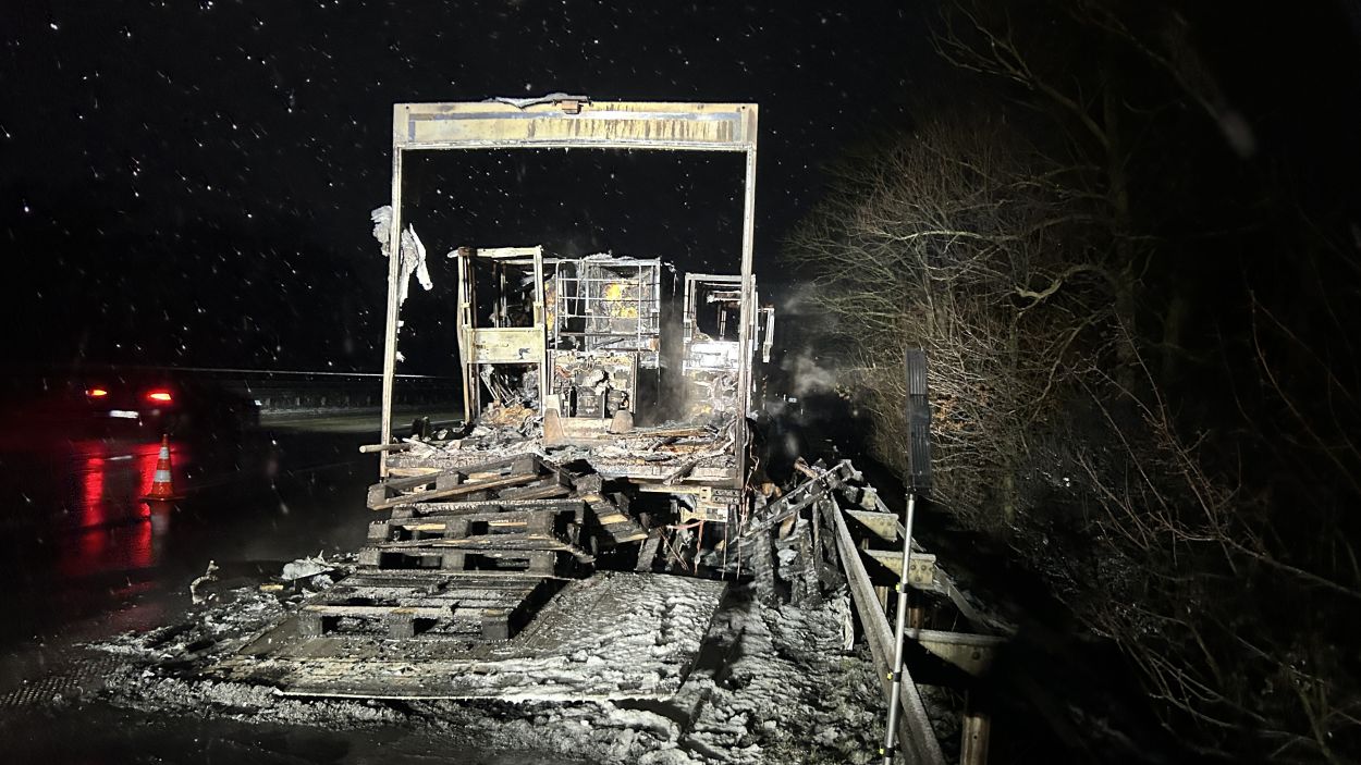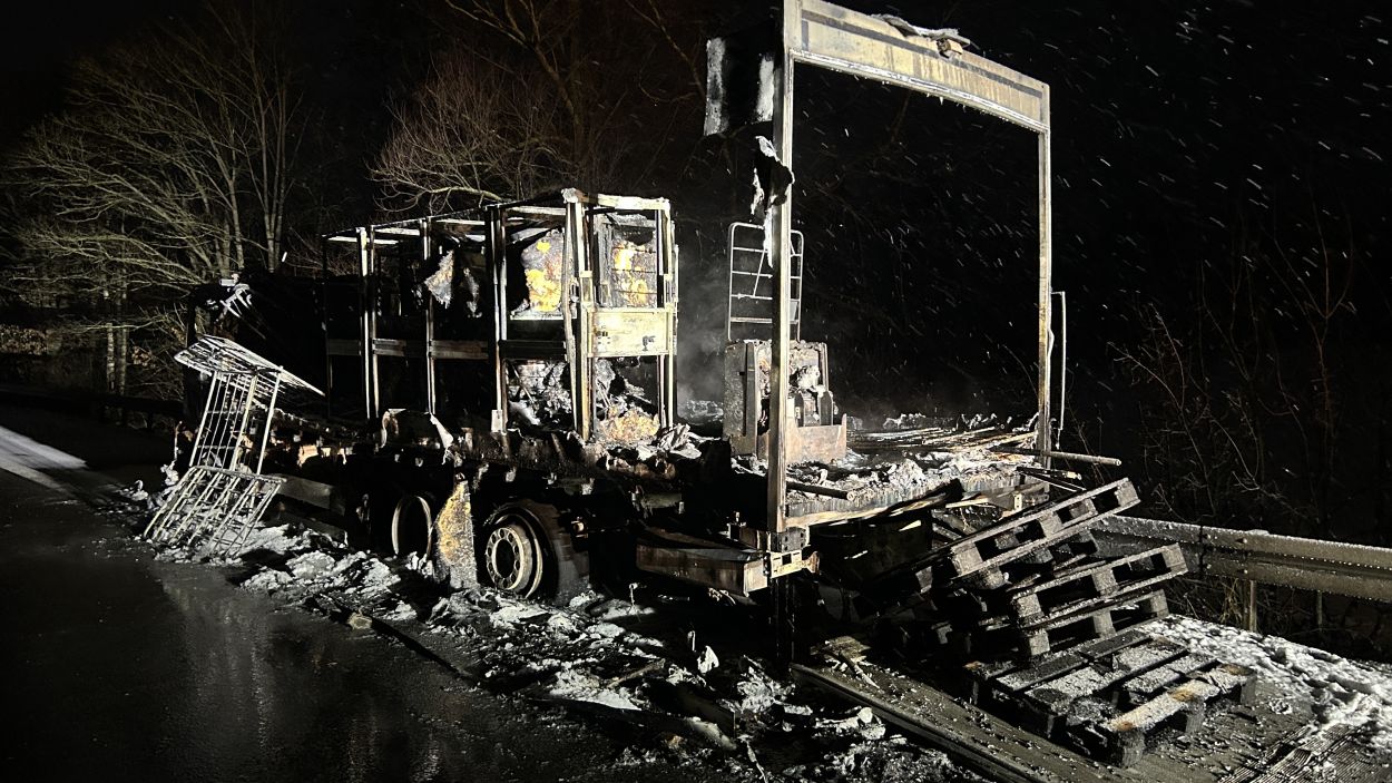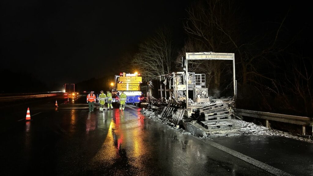 KS: LKW-Brand auf der A44 – Kühlauflieger brennt vollständig aus