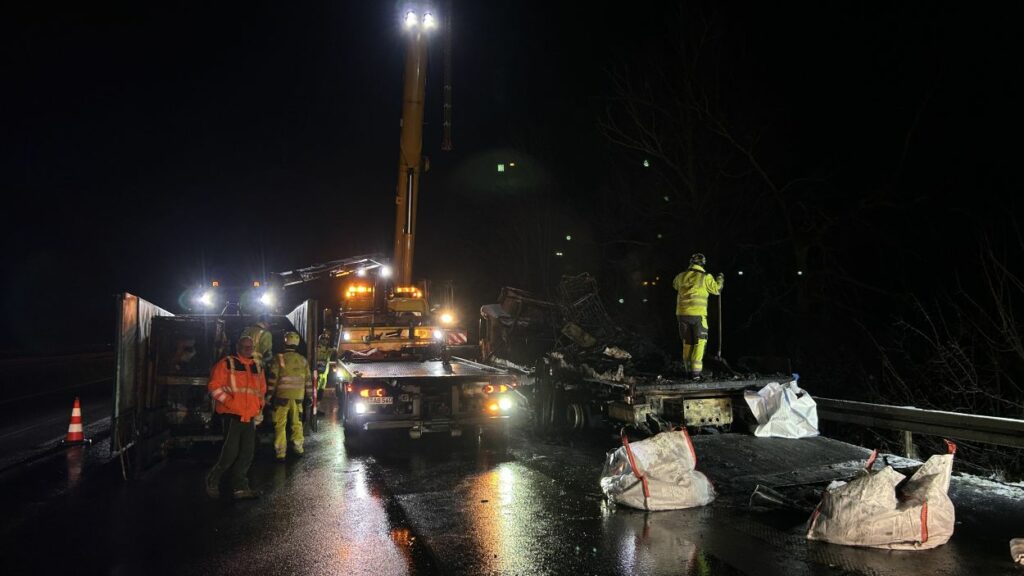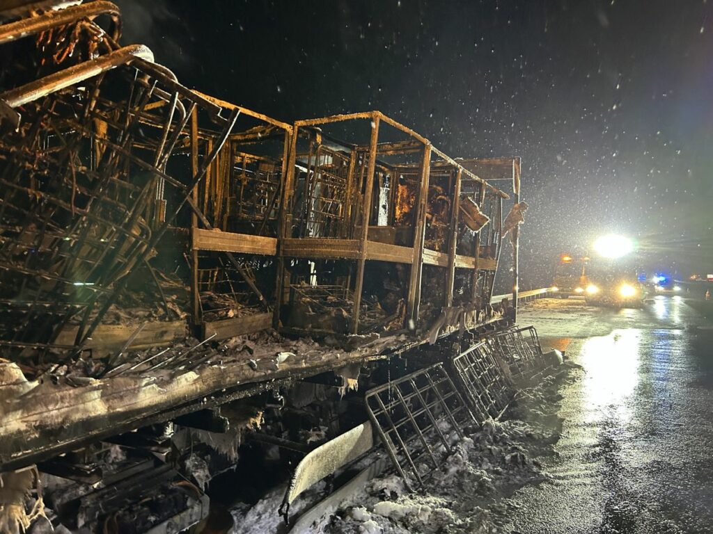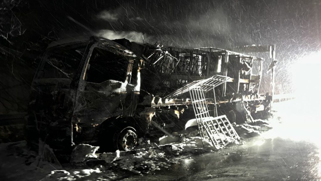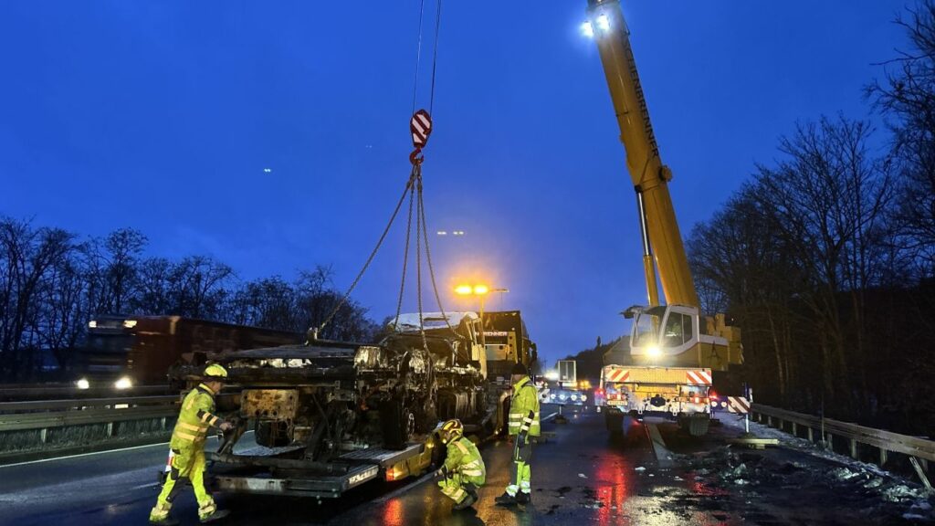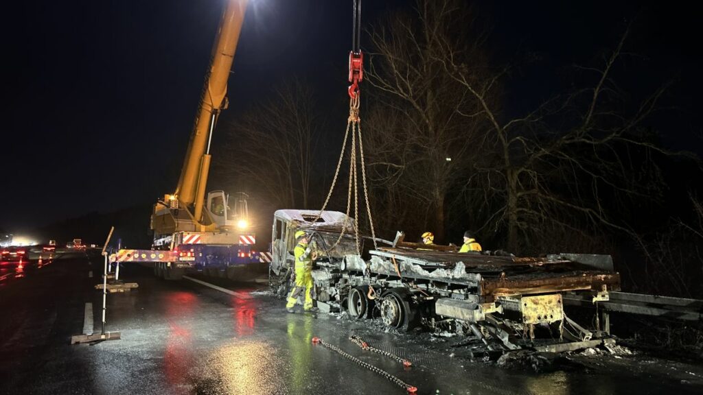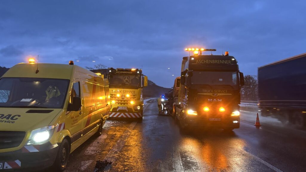 KS: LKW-Brand auf der A44 – Kühlauflieger brennt vollständig aus