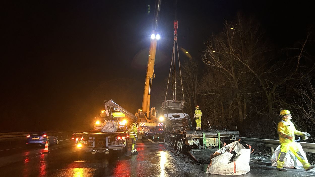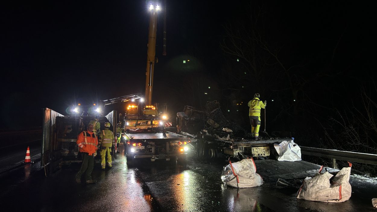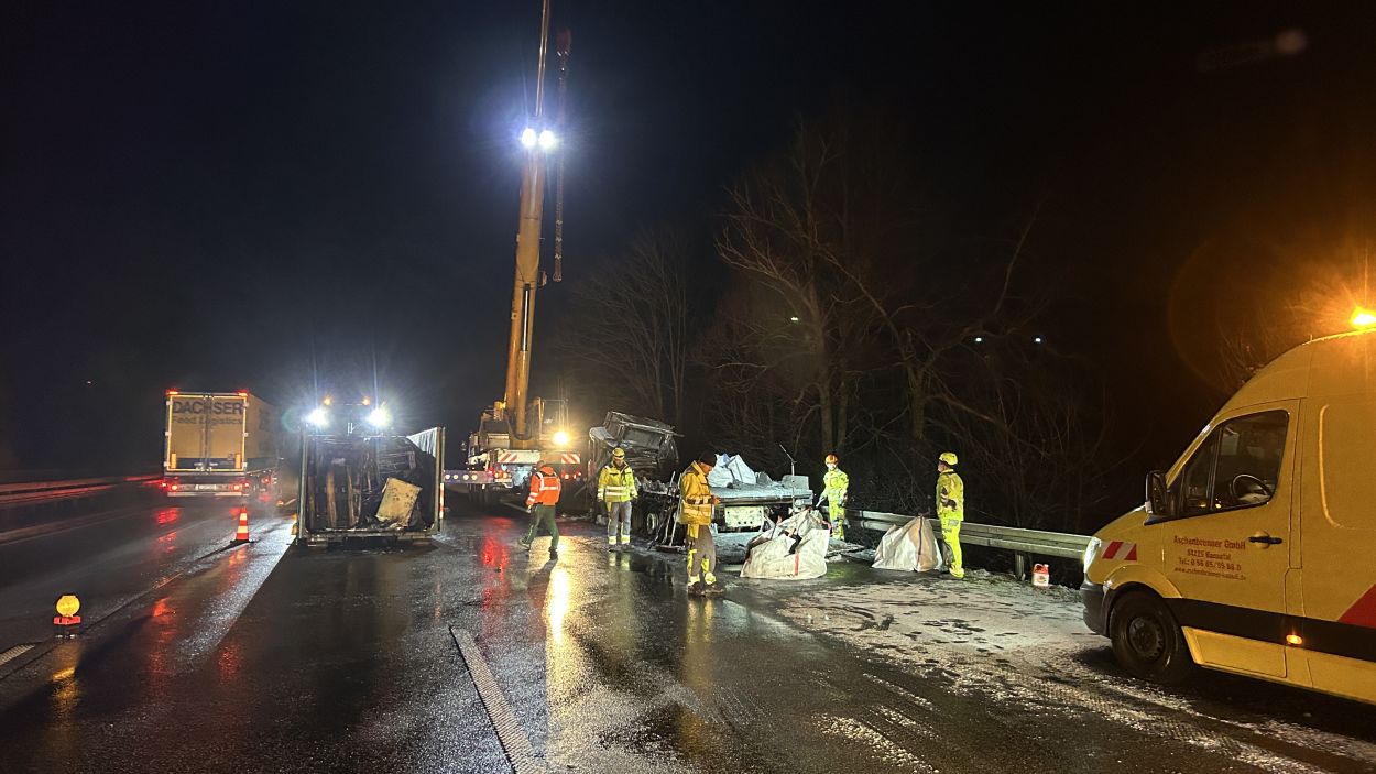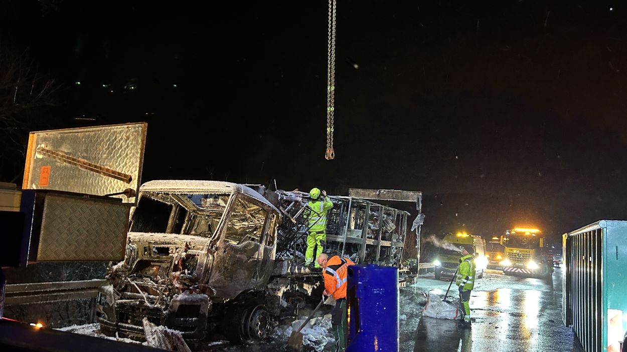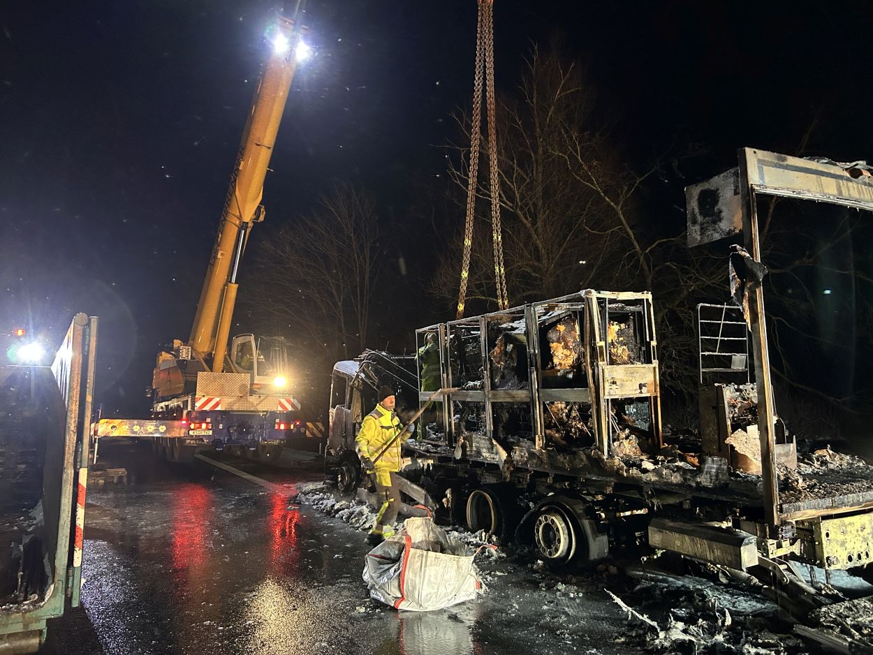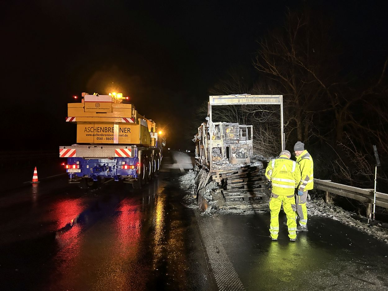 Das Fahrzeug, ein Sattelzug mit Kühlauflieger, brannte mitsamt seiner Ladung vollständig aus. Nach Angaben der Einsatzkräfte war der Kühlanhänger mit sogenannten Kühlrollis beladen. Für die umfangreichen Löscharbeiten musste die Autobahn in Fahrtrichtung Dortmund zeitweise voll gesperrt werden. In den Morgenstunden kam es durch Nachlöscharbeiten sowie die anschließende Bergung zu weiteren Verkehrsbehinderungen. Da für die Bergung ein Kran eingesetzt werden musste, wurden zwei Fahrstreifen gesperrt. Die Maßnahmen zogen sich bis etwa 9 Uhr hin. Verletzt wurde bei dem Brand niemand. Als mögliche Brandursache wird derzeit ein technischer Defekt vermutet. Die genaue Ursache ist jedoch Gegenstand der laufenden Ermittlungen.