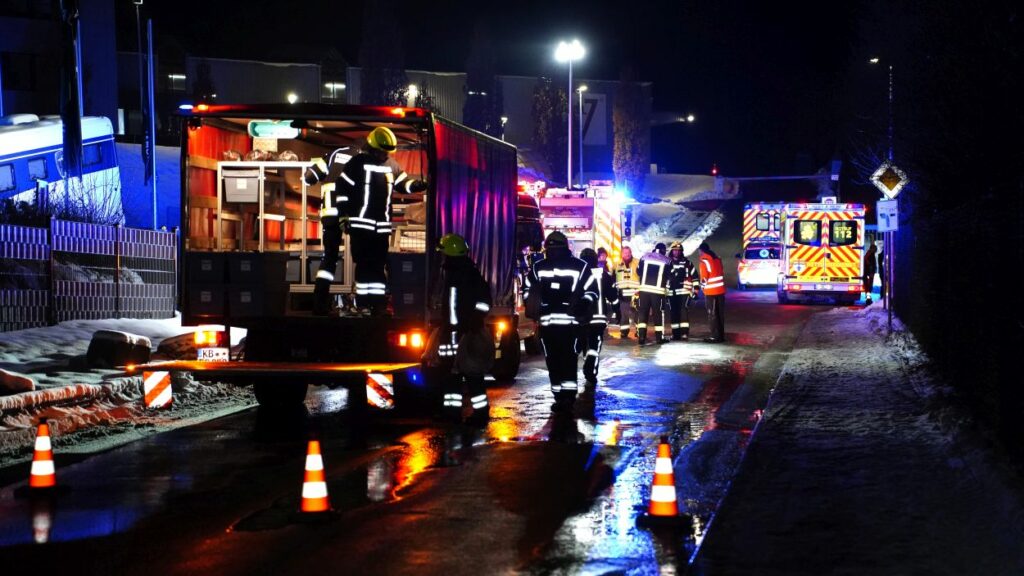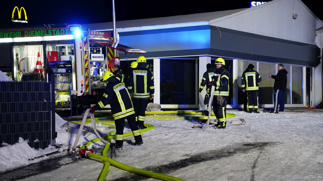 Ersten Erkenntnissen zufolge führten ein 32-Jähriger und ein 33-Jähriger Lackierarbeiten am Dach des Raumes durch. Dabei gerieten eine Lackierpistole und ein Kompressor in Brand. Der 32-Jährige versuchte noch, das Feuer zu löschen, stieß dabei jedoch ein Behältnis mit leicht entzündlicher Flüssigkeit um. Diese geriet auch an seine Kleidung, die in Brand geriet. Der Mann zog sich schwere Brandverletzungen an den Beinen sowie eine Rauchgasintoxikation zu. Er konnte sich selbst aus dem Gebäude retten und die Flammen im Schnee löschen. Der 33-Jährige wurde vorsorglich ins Krankenhaus gebracht.