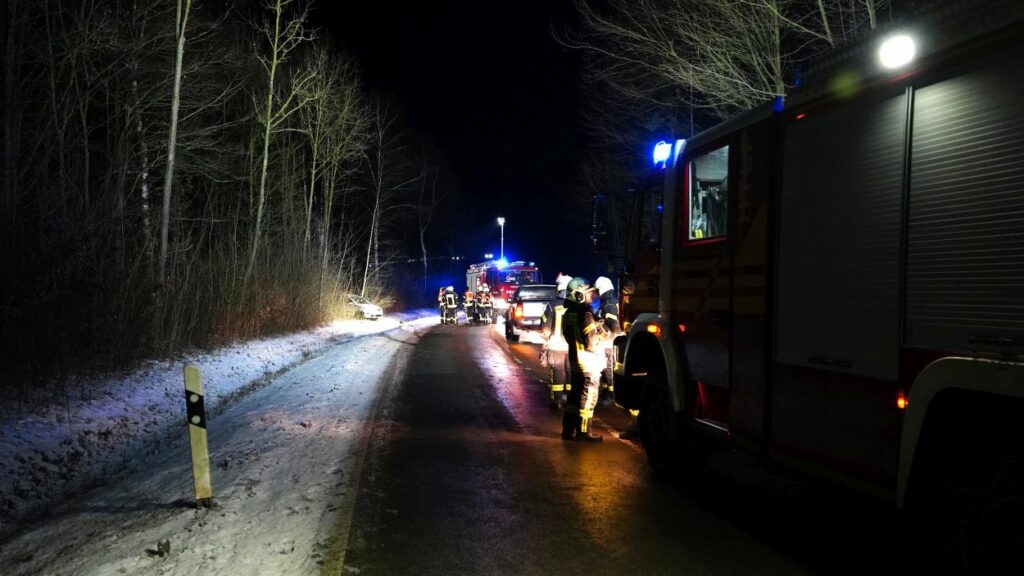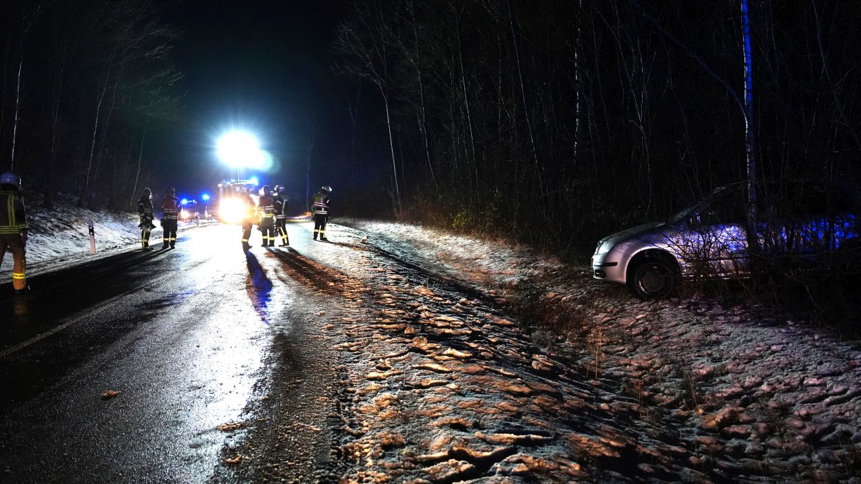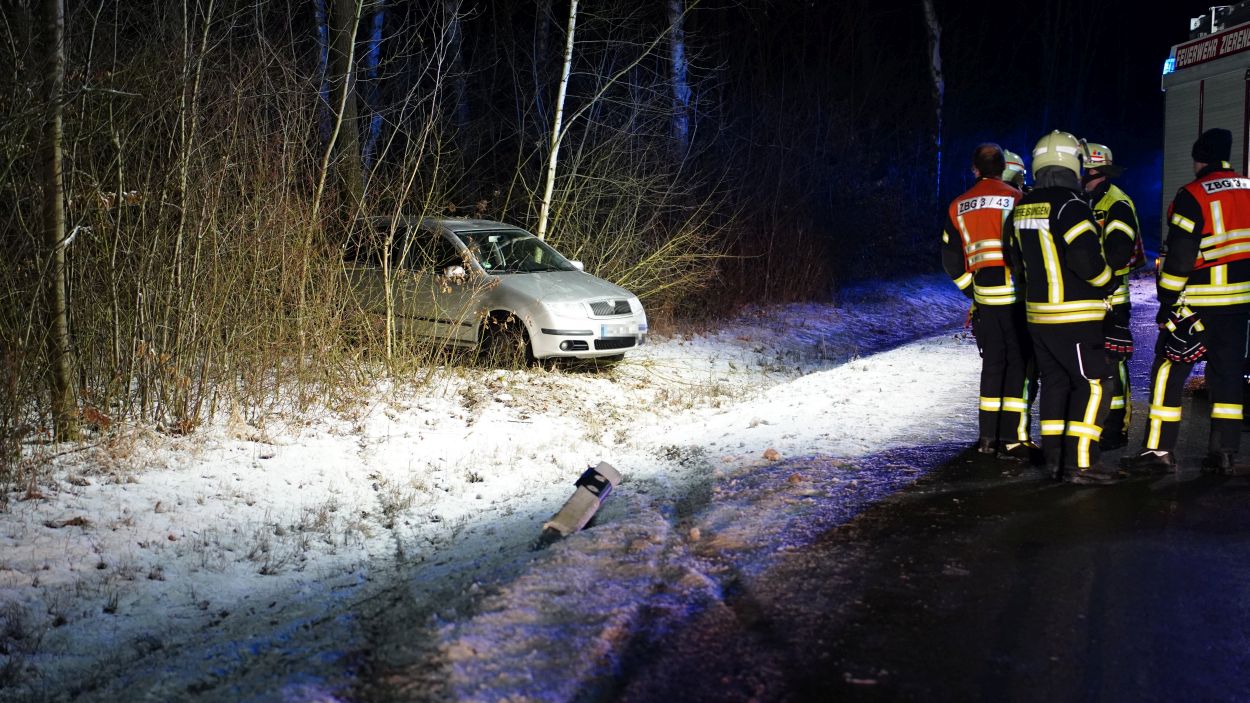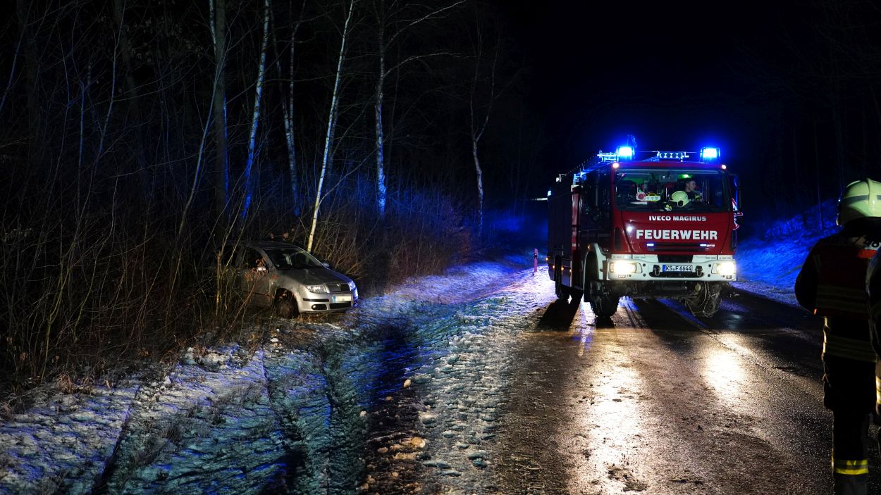 Zierenberg – Zu einem Verkehrsunfall mit gemeldeter eingeklemmter Person wurde die Feuerwehr Zierenberg mit Ortsteilen am Sonntagabend gegen 19.40 Uhr alarmiert. Auf der Landesstraße 3214 zwischen Zierenberg und Oberelsungen war es zu einem Alleinunfall gekommen. Ein mit zwei Personen besetzter Pkw befuhr die Landstraße aus Richtung Oberelsungen kommend. In einer Rechtskurve verlor der Fahrer vermutlich aufgrund winterlicher Straßenverhältnisse die Kontrolle über das Fahrzeug. Der Pkw kam nach links von der Fahrbahn ab, drehte sich und blieb schließlich zwischen Bäumen und Sträuchern stehen.