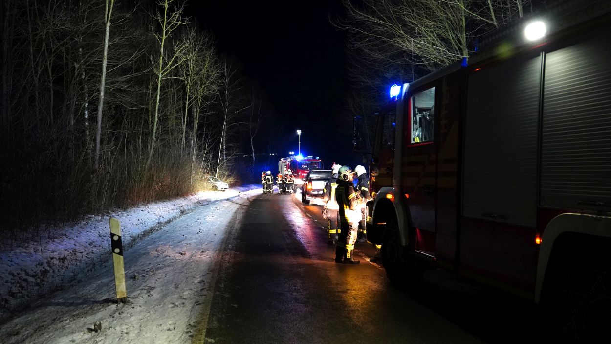 Beim Eintreffen der Rettungskräfte hatten die Insassen das Fahrzeug bereits selbstständig verlassen. Die Feuerwehr sicherte die Unfallstelle und leuchtete sie aus. Die L3214 musste nur kurzfristig voll gesperrt werden. Die beiden Fahrzeuginsassen wurden vorsorglich in ein Krankenhaus gebracht.