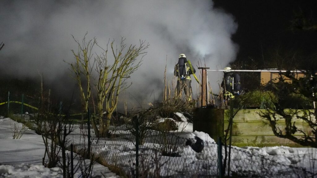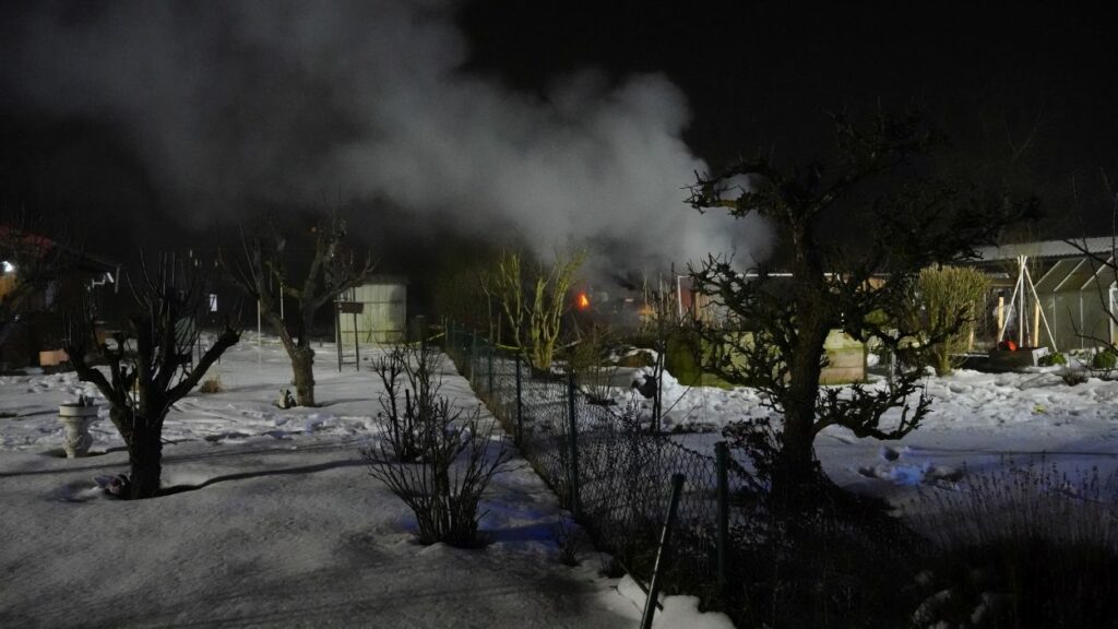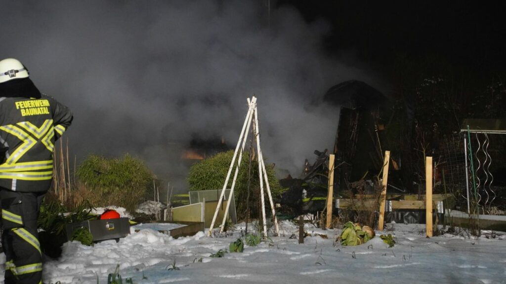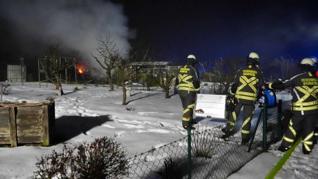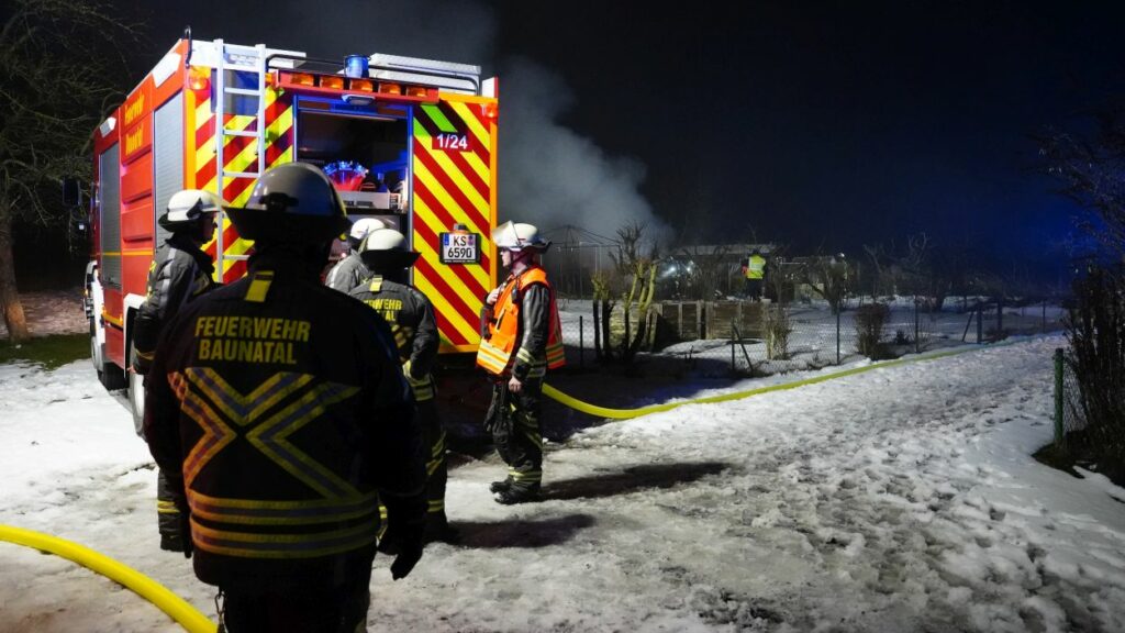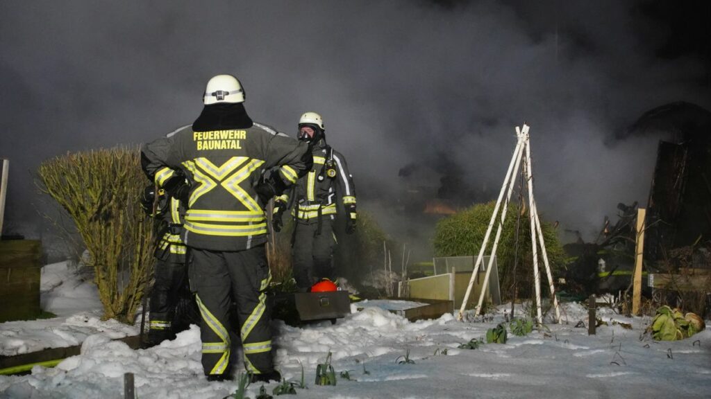 Baunatal – Am Samstagabend gegen 22:30 Uhr wurde die Feuerwehr Baunatal zu einem Schuppenbrand auf dem Gelände des Kleingartenvereins alarmiert. Bereits auf der Anfahrt war ein großer Feuerschein sichtbar. Beim Eintreffen der Einsatzkräfte stand eine Gartenhütte in Vollbrand. Der Besitzer versuchte noch, erste Löschmaßnahmen zu ergreifen, konnte das Feuer jedoch nicht stoppen und verletzte sich dabei. Er wurde zur Behandlung in ein Krankenhaus gebracht.