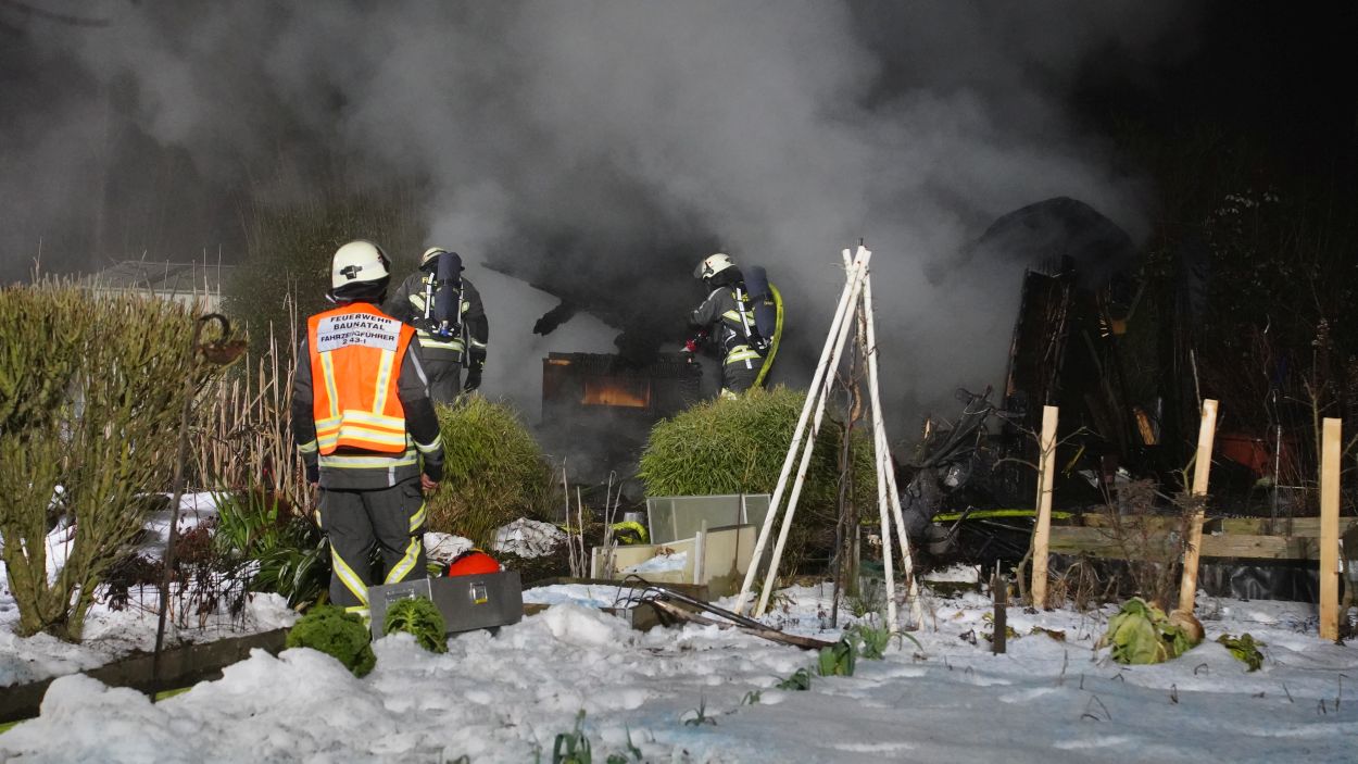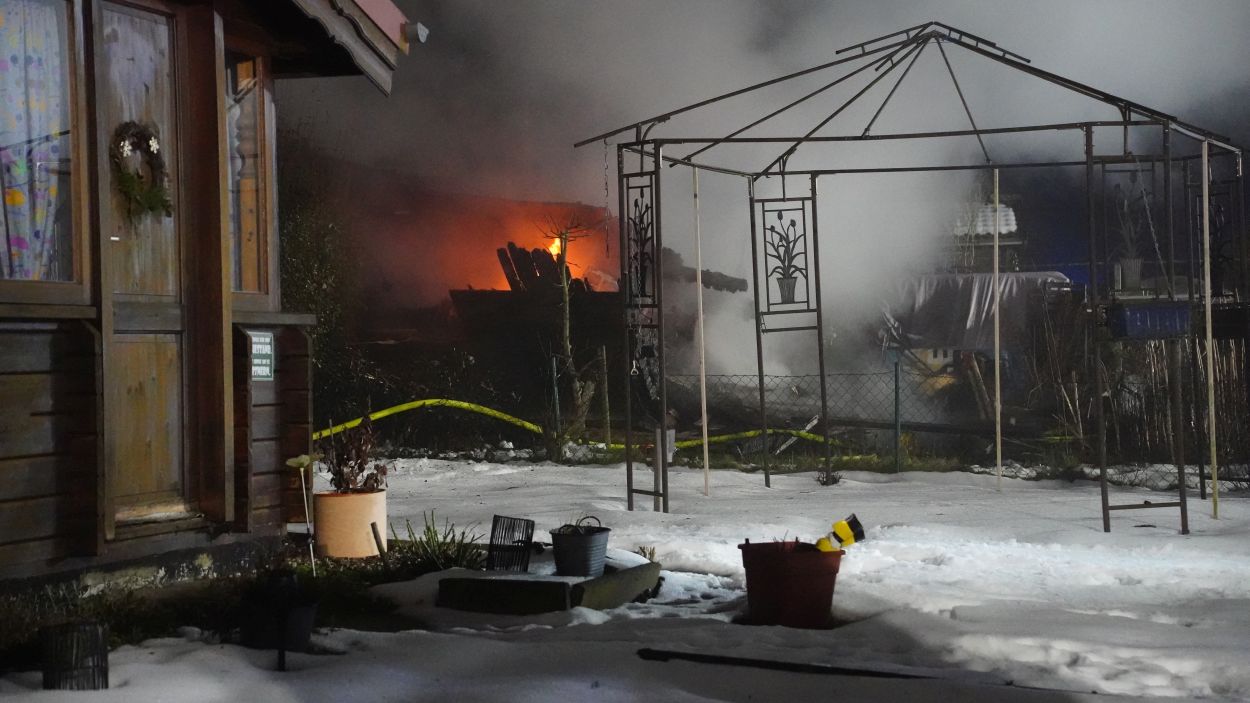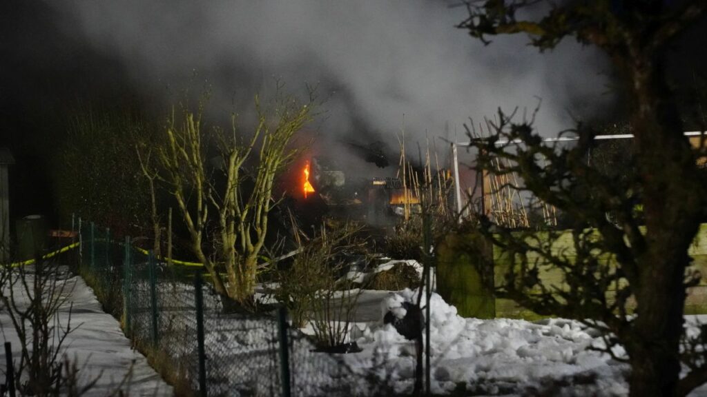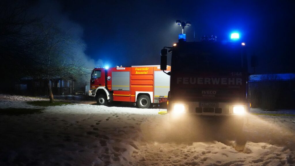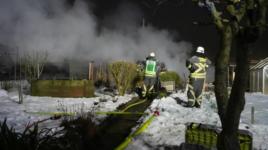 Baunatal – Am Samstagabend gegen 22:30 Uhr wurde die Feuerwehr Baunatal zu einem Schuppenbrand auf dem Gelände des Kleingartenvereins alarmiert. Bereits auf der Anfahrt war ein großer Feuerschein sichtbar. Beim Eintreffen der Einsatzkräfte stand eine Gartenhütte in Vollbrand. Der Besitzer versuchte noch, erste Löschmaßnahmen zu ergreifen, konnte das Feuer jedoch nicht stoppen und verletzte sich dabei. Er wurde zur Behandlung in ein Krankenhaus gebracht.