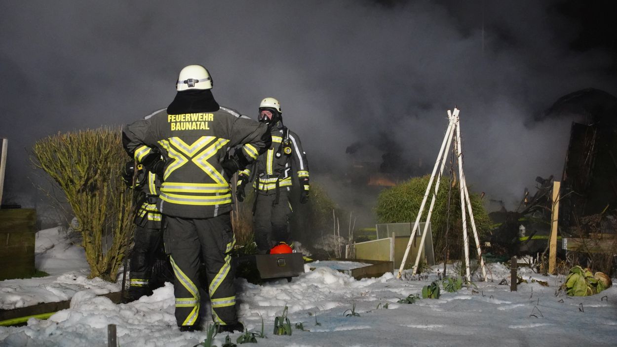 Die Feuerwehr konnte den Brand unter Atemschutz schnell unter Kontrolle bringen. Aus der Hütte wurde eine Gasflasche geborgen, die gekühlt werden musste, um eine Explosion zu verhindern. Mit dem Tanklöschfahrzeug und dem Abrollbehälter „Wasser“ stand zunächst ausreichend Löschwasser zur Verfügung. Um die Wasserversorgung dauerhaft sicherzustellen, verlegten die Einsatzkräfte eine Schlauchleitung über eine längere Strecke. Die Nachlöscharbeiten gestalteten sich sehr aufwendig und zogen sich bis in die frühen Morgenstunden hin. Die Feuerwehr Baunatal war mit den Ortsteilen Altenbauna und Altenritte mit rund 30 Einsatzkräften im Einsatz.
