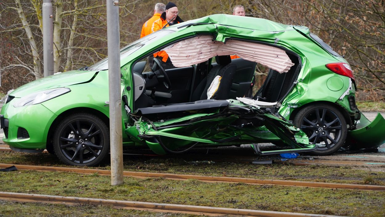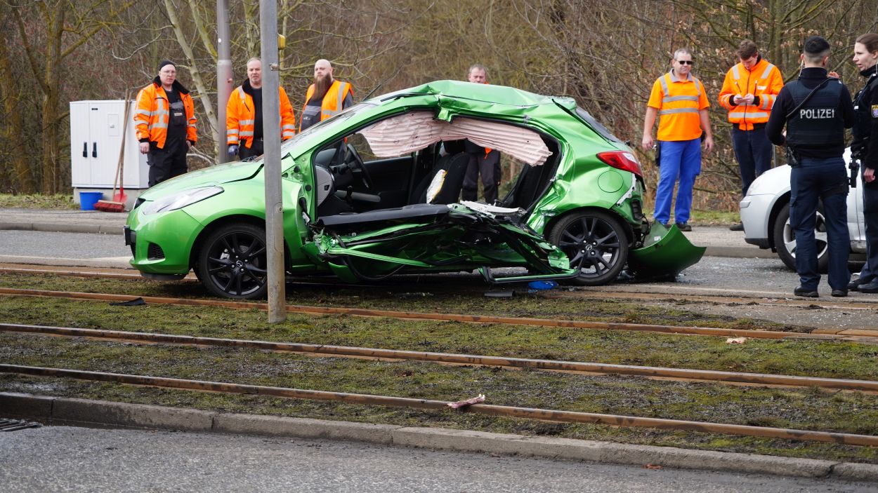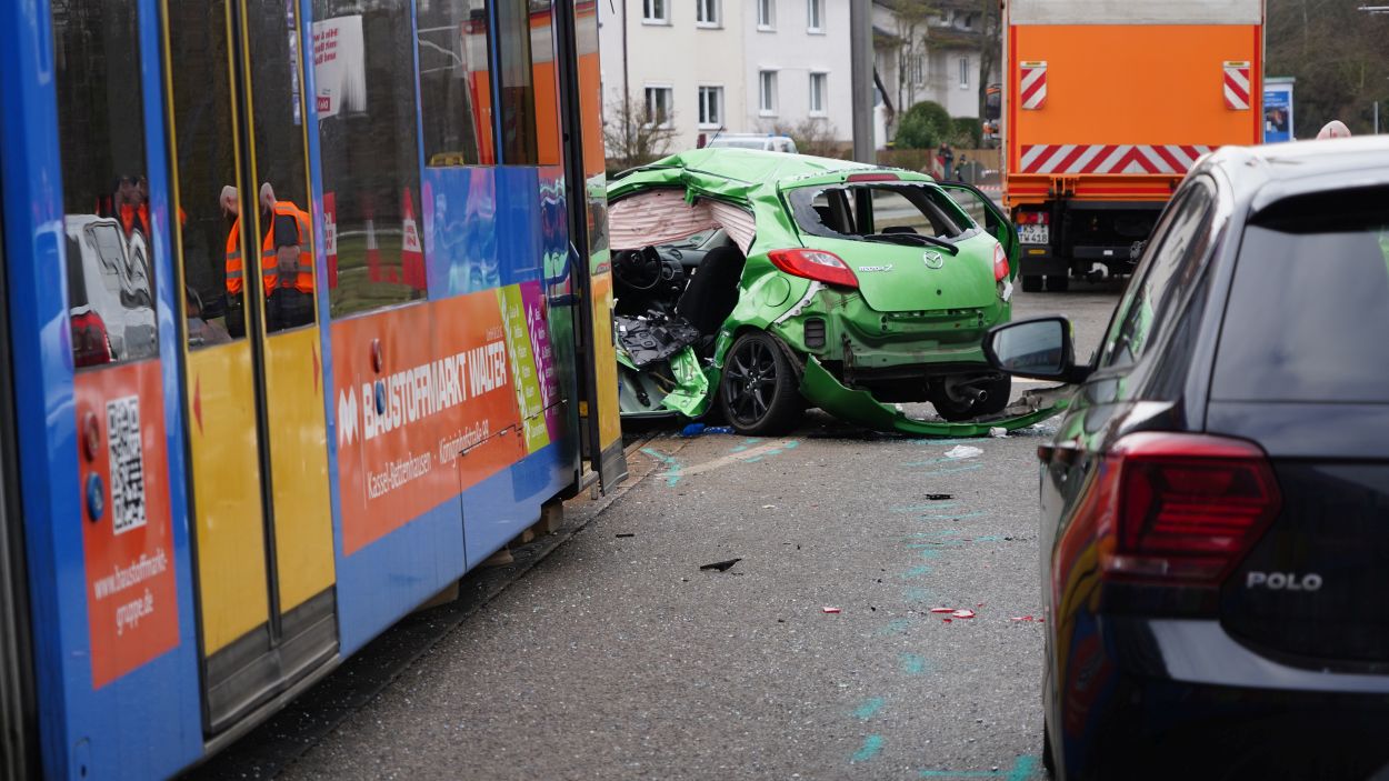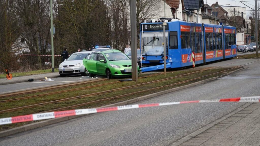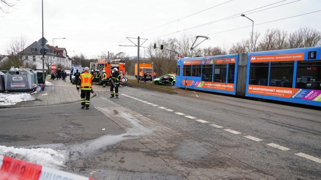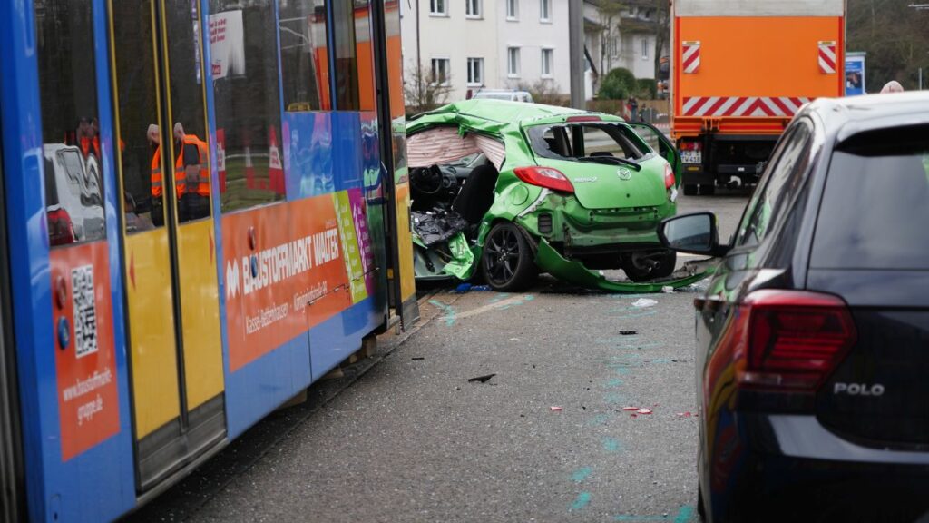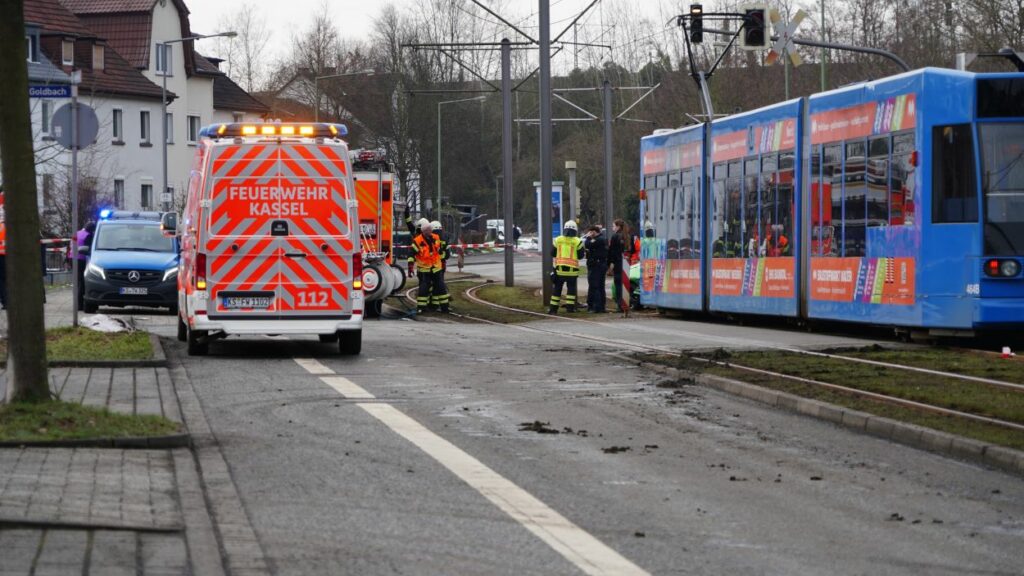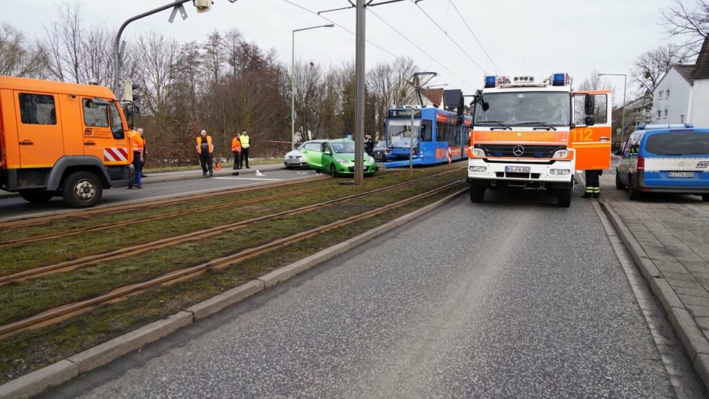 Kassel – Am Montagmittag gegen 11.50 Uhr kam es auf der Altenbaunarer Straße in Kassel zu einem schweren Straßenbahnunfall. Ein Pkw-Fahrer war stadtauswärts unterwegs und wollte in Höhe „Am Goldbach“ nach links über die Gleise abbiegen. Dabei übersah er offenbar eine ebenfalls stadtauswärts fahrende Straßenbahn. Der Pkw wurde von der Straßenbahn erfasst, der Fahrer im Fahrzeug schwer eingeklemmt. Einsatzkräfte der Feuerwehr mussten den Mann aus dem Wagen befreien. Er wurde mit lebensbedrohlichen Verletzungen in ein Krankenhaus gebracht. In den Unfall waren außerdem drei weitere Pkw verwickelt. Zur Klärung der genauen Unfallursache wurde ein Gutachter hinzugezogen. Die Altenbaunarer Straße war während der Unfallaufnahme zeitweise in beide Fahrtrichtungen voll gesperrt. Gegen 14.20 Uhr war die Unfallstelle geräumt. Bei neuen Informationen berichten wir nach.