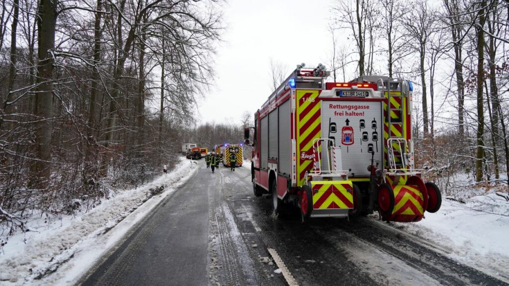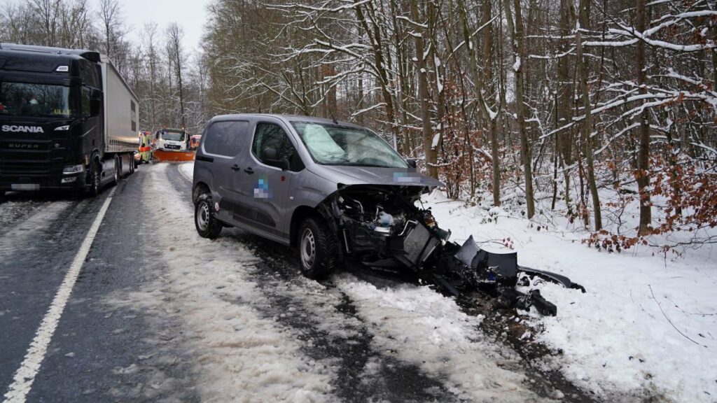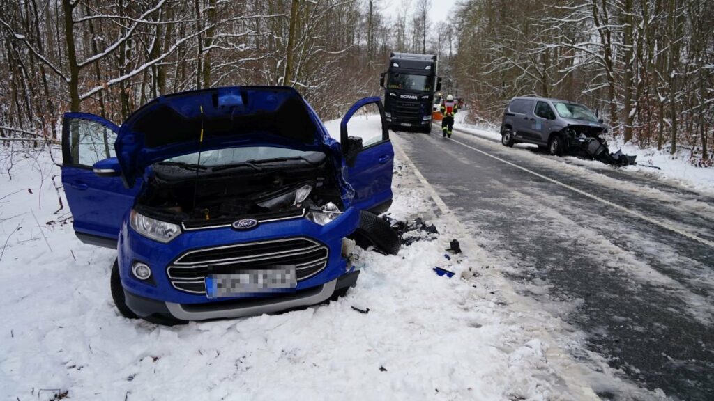 Nach bisherigen Erkenntnissen befuhr ein Sattelzug, hinter dem sich eine Fahrzeugschlange gebildet hatte, die Landstraße von Breuna kommend in Richtung Oberlistingen. Laut übereinstimmenden Zeugenaussagen geriet der Lastwagen aufgrund der winterlichen Straßenverhältnisse ins Schlingern. Eine 26-jährige Fahrerin war zeitgleich mit ihrem Kastenwagen aus Richtung Oberlistingen in Richtung Breuna unterwegs. Als sie den ins Schlingern geratenen Lkw bemerkte, versuchte sie auszuweichen. Dabei geriet sie nach rechts in die Bankette und verlor die Kontrolle über ihr Fahrzeug. In der Folge schleuderte der Kastenwagen in den Gegenverkehr und kollidierte dort mit einem Pkw eines 69-Jährigen, der sich in der Fahrzeugschlange hinter dem Lkw befand.