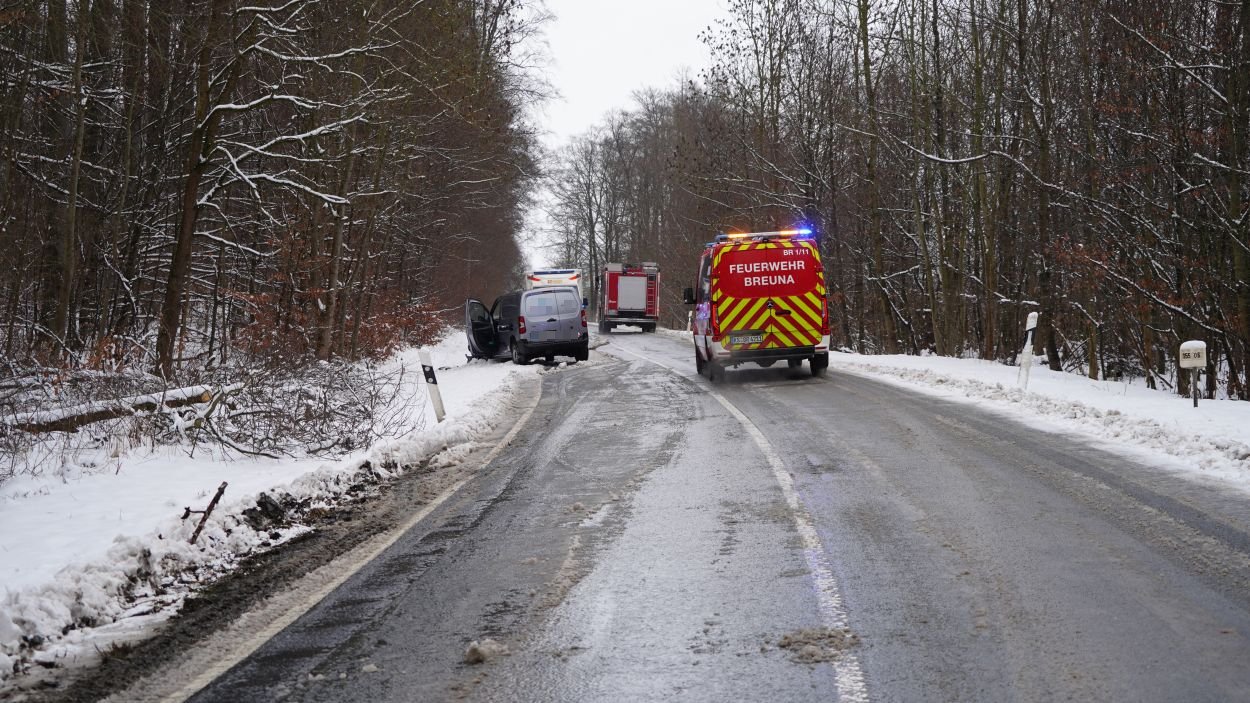 Breuna – Auf der Landesstraße 3080 zwischen Breuna und Oberlistingen hat sich am Montagvormittag gegen 10.15 Uhr ein schwerer Verkehrsunfall mit anschließender Unfallflucht ereignet. Vier Menschen wurden dabei leicht verletzt.