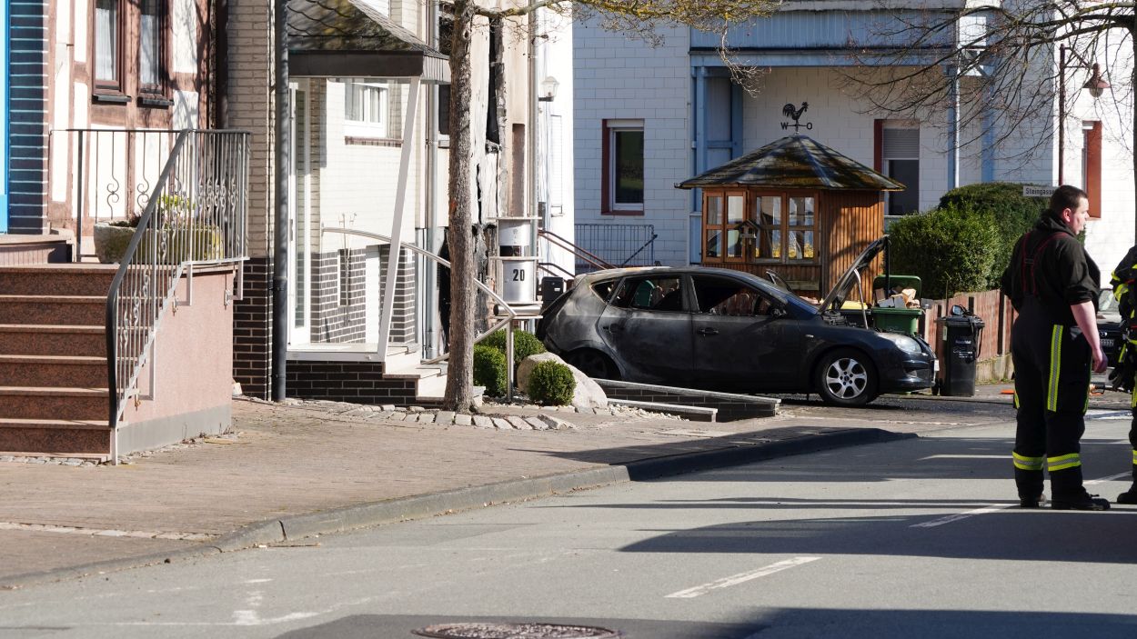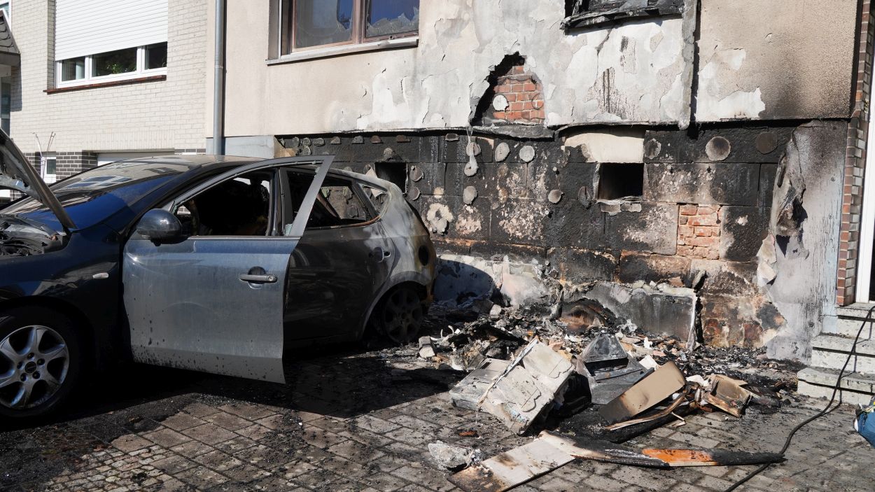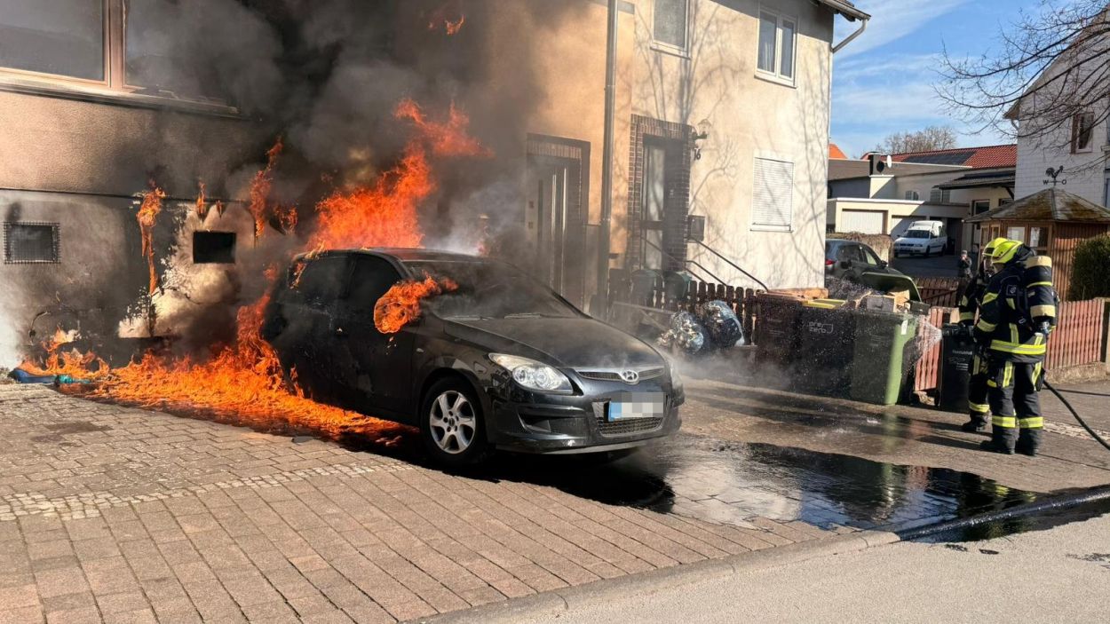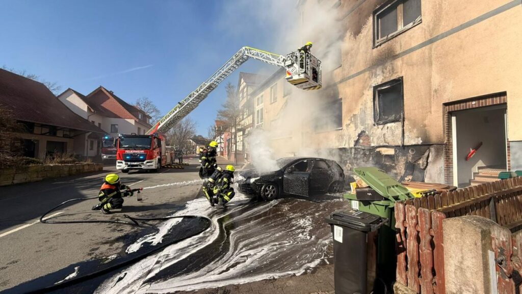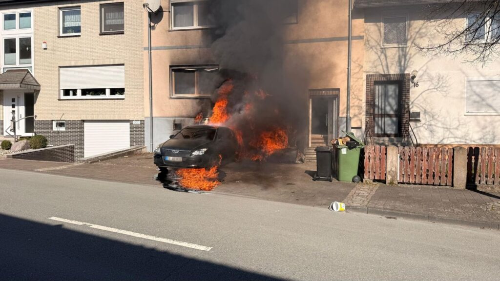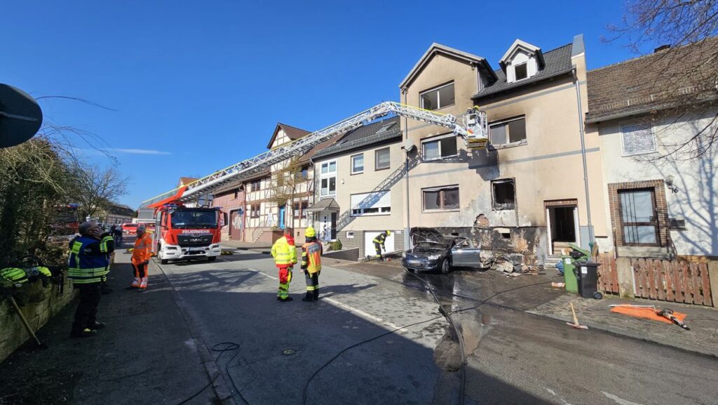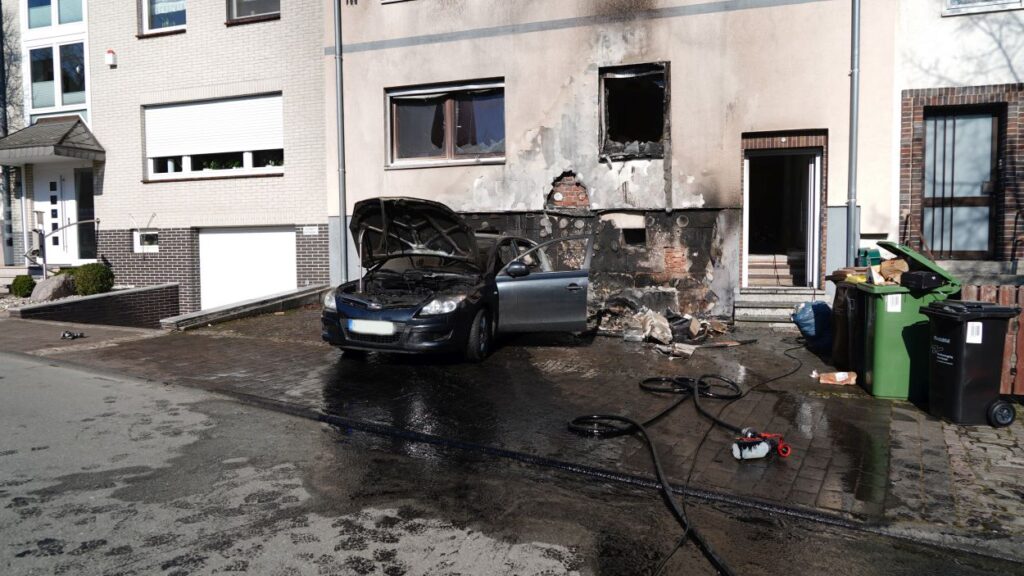 Beim Eintreffen der ersten Feuerwehrleute stand Unrat an der Fassade eines Wohnhauses bereits in Vollbrand. Die Flammen hatten zu diesem Zeitpunkt schon auf einen geparkten Pkw sowie auf das Gebäude selbst übergegriffen. Durch die enorme Hitze waren Fensterscheiben geborsten, wodurch sich das Feuer auch ins Innere des Hauses ausbreiten konnte. Zunächst bestand die Befürchtung, dass sich noch Personen im Gebäude befinden könnten. Die Feuerwehr stellte die Löscharbeiten daraufhin vorübergehend ein, um umgehend eine Menschenrettung einzuleiten. Schnell stellte sich jedoch heraus, dass alle Bewohner das Haus bereits rechtzeitig verlassen hatten. Anschließend konnten sich die Einsatzkräfte wieder vollständig auf die Löscharbeiten konzentrieren und den Brand zügig unter Kontrolle bringen.