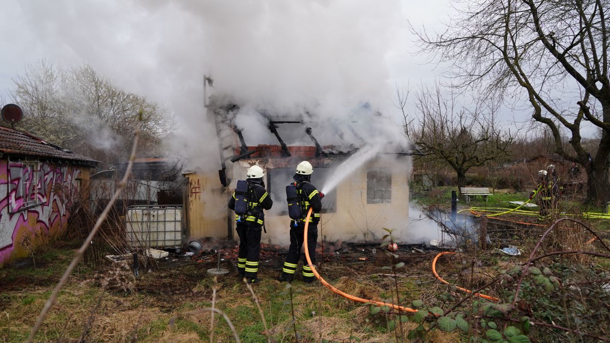 Immer wieder kommt es in dem Bereich zu Bränden leerstehender Gartenhütten. Die Polizei ermittelt bereits in mehreren Fällen wegen des Verdachts der Brandstiftung. Auch in diesem Fall dauern die Ermittlungen zur Brandursache an.