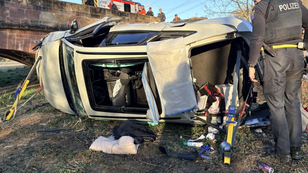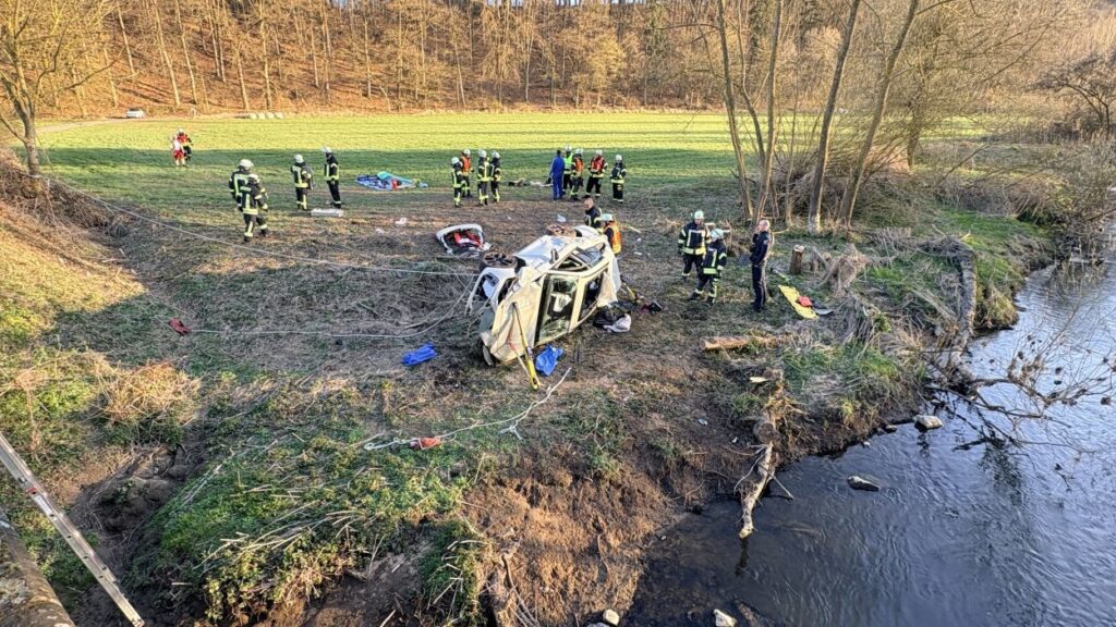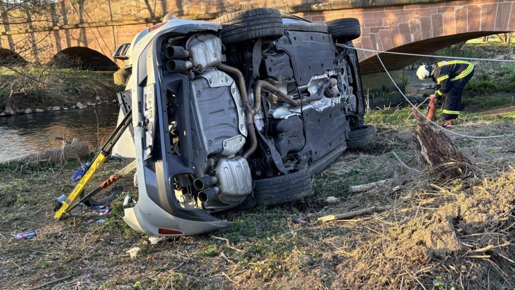 Borken – Glück im Unglück hatten am späten Freitagnachmittag vier Insassen eines PKW bei einem schweren Alleinunfall nahe Borken-Kerstenhausen. Aus bislang ungeklärter Ursache kam das Fahrzeug in einer Rechtskurve von der Fahrbahn ab, überschlug sich und kam nur wenige Meter von der Schwalm entfernt auf der Seite liegend zum Stillstand. Der Rettungsdienst und die Feuerwehr waren mit einem Großaufgebot vor Ort im Einsatz.
