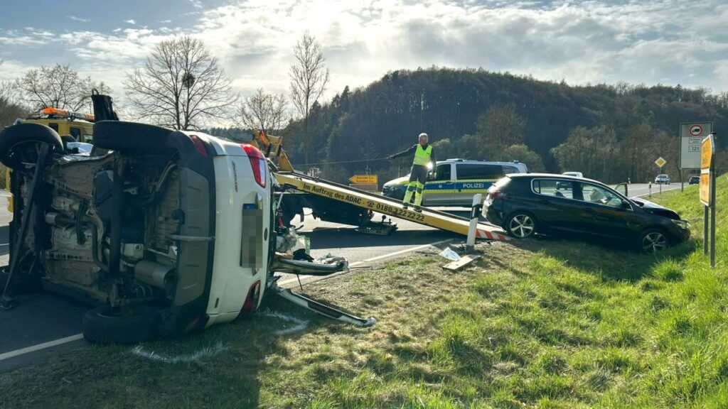 Nach ersten Erkenntnissen missachtete ein 71-jähriger Autofahrer gegen 15.40 Uhr die Vorfahrt einer 41-jährigen Pkw-Fahrerin. Der Mann wollte aus Reichenbach kommend auf die B7 auffahren und übersah dabei das von links herannahende Fahrzeug. Im Kreuzungsbereich kam es dann zur Kollision. Durch die Wucht des Aufpralls überschlug sich der Wagen des Seniors und blieb auf der Beifahrerseite liegen. Die 41-Jährige wurde schwer verletzt in ihrem Fahrzeug eingeschlossen. Der 71-jährige Unfallverursacher wurde eingeklemmt und erlitt lebensgefährliche Verletzungen. Sein 26-jähriger Enkel, der sich ebenfalls im Fahrzeug befand, konnte sich schwer verletzt selbstständig aus dem Wagen befreien.
