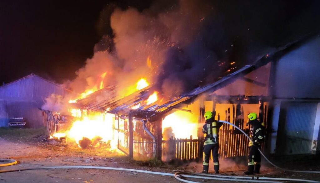 Bad Sooden-Allendorf – In der Nacht zum Dienstag wurde die Feuerwehr gegen 00:30 Uhr zu einem Brand auf dem Gelände der ehemaligen Stadtgärtnerei in der Straße „Am Gradierwerk“ in Bad Sooden-Allendorf alarmiert. Beim Eintreffen der Einsatzkräfte stand ein Holzverschlag des Lagerhauses in Vollbrand. Unmittelbar daneben befand sich außerhalb des Verschlags ein Stapel Altreifen. In dem betroffenen Unterstand waren zudem vier ältere Pkw-Anhänger abgestellt, die durch die Flammen erheblich beschädigt wurden.