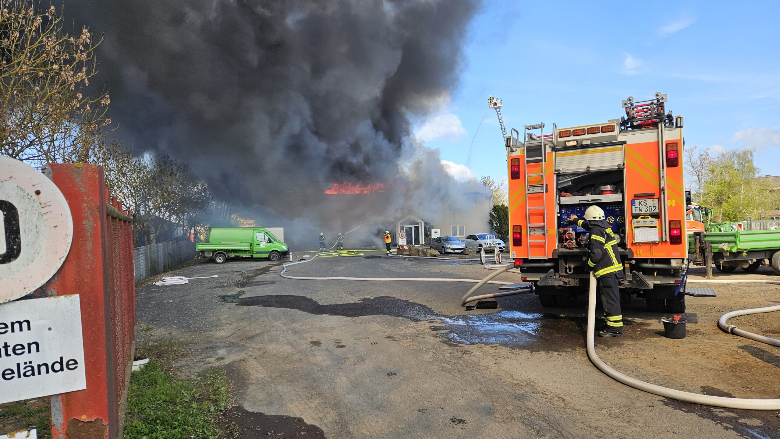 Fuldatal – In der Ihringshäuser Straße in Fuldatal, unmittelbar an der Stadtgrenze zu Kassel, ist am Dienstag ein größerer Brand auf dem Gelände eines Unternehmens ausgebrochen. Feuerwehr und Polizei sind derzeit mit einem umfangreichen Aufgebot im Einsatz.