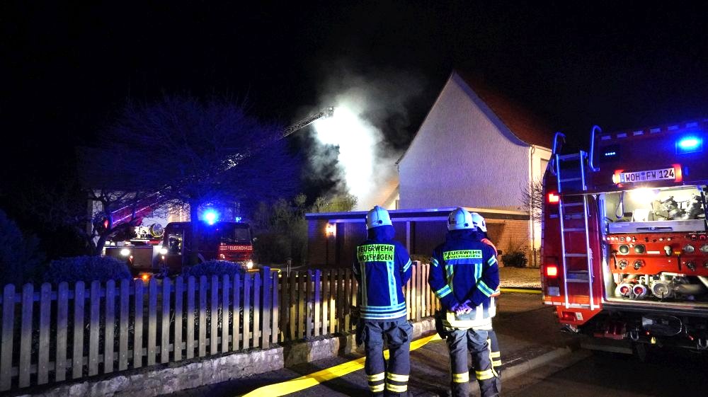 Wolfhagen – In der Neujahrsnacht wurde die Feuerwehr Wolfhagen gegen 05.30 Uhr zu einem Gebäudebrand nach Niederelsungen alarmiert. Beim Eintreffen der Einsatzkräfte in der Volkmarser Straße stand ein Holzschuppen im Vollbrand. Das angrenzendes Haus konnte die Feuerwehr Schützen. Das Feuer war schnell unter Kontrolle. Verletzt wurde niemand. Die Brandursache ist unklar.