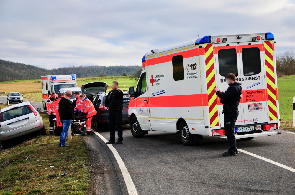 Bad Zwesten – Eine Vorfahrtsmissachtung auf der L3074 zwischen Bad Zwesten und Niederurff forderte am Montagnachmittag insgesamt vier Verletzte. Vier verletzte Verkehrsteilnehmer und zwei Totalschäden, ist die Bilanz eines Verkehrsunfall am Montagnachmittag zwischen Bad Zwesten und Niederurff. Zwei Fahrzeuge kollidierten im Bereich eines Wirtschaftsweges miteinander. Nach ersten Erkenntnissen von der Unfallstelle, wollte eine 19-jährige Verkehrsteilnehmerin aus Bad Zwesten mit ihrem Fahrzeug von einem Wirtschaftsweg nach links in Richtung Bad Zwesten abbiegen.