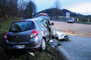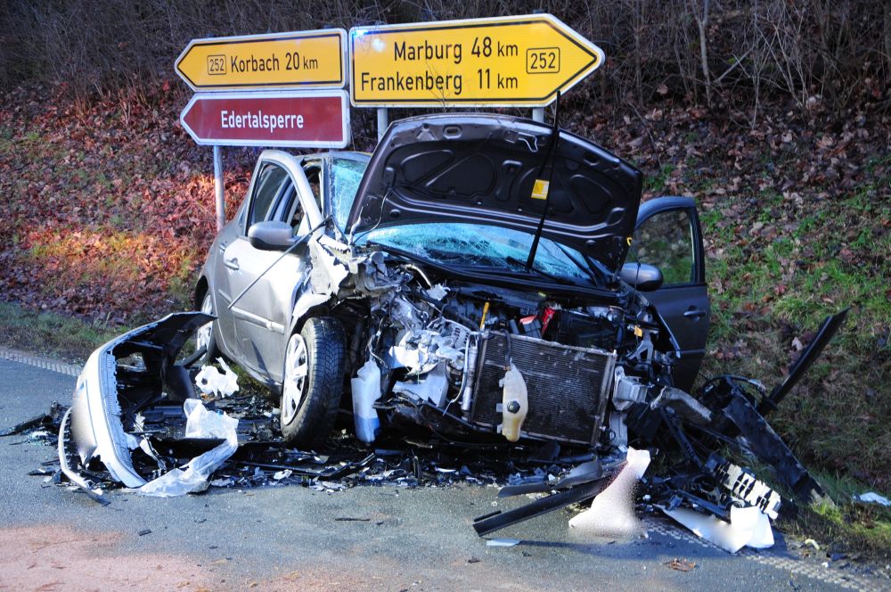 Durch den Zusammenprall wurde das Fahrzeug der Frankenbergerin quer über die Fahrbahn in einen angrenzenden Graben geschleudert. Dabei wurden beide Insassen, die 23 Jährige Fahrerin sowie ihre 34-jährige Beifahrerin aus Frankenberg, schwer verletzt. Das Fahrzeug der Korbacherin wurde nach rechts an die Leitplanke abgewiesen. Auch in diesen Fahrzeug wurden insgesamt zwei Personen schwer verletzt. Der Rettungsdienst war mit zahlreichen Rettungsmitteln vor Ort im Einsatz und brachte die Verletzten nach ihrer Erstversorgung in die Krankenhäuser nach Korbach, Frankenberg und Marburg gebracht. An beiden Fahrzeugen entstand ein Totralschaden in Höhe von insgesamt 30.000 Euro. Die Bundesstraße 252 war für mehrere Stunden in beide Richtungen voll gesperrt, so dass sich der Verkehr bis an die Einmündung nach Viermünden zurück staute. Neben dem Rettungsdienst und der Polizei Frankenberg waren auch Kameraden der Feuerwehr vor Ort im Einsatz.