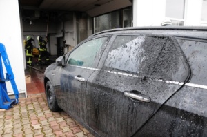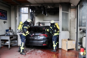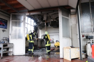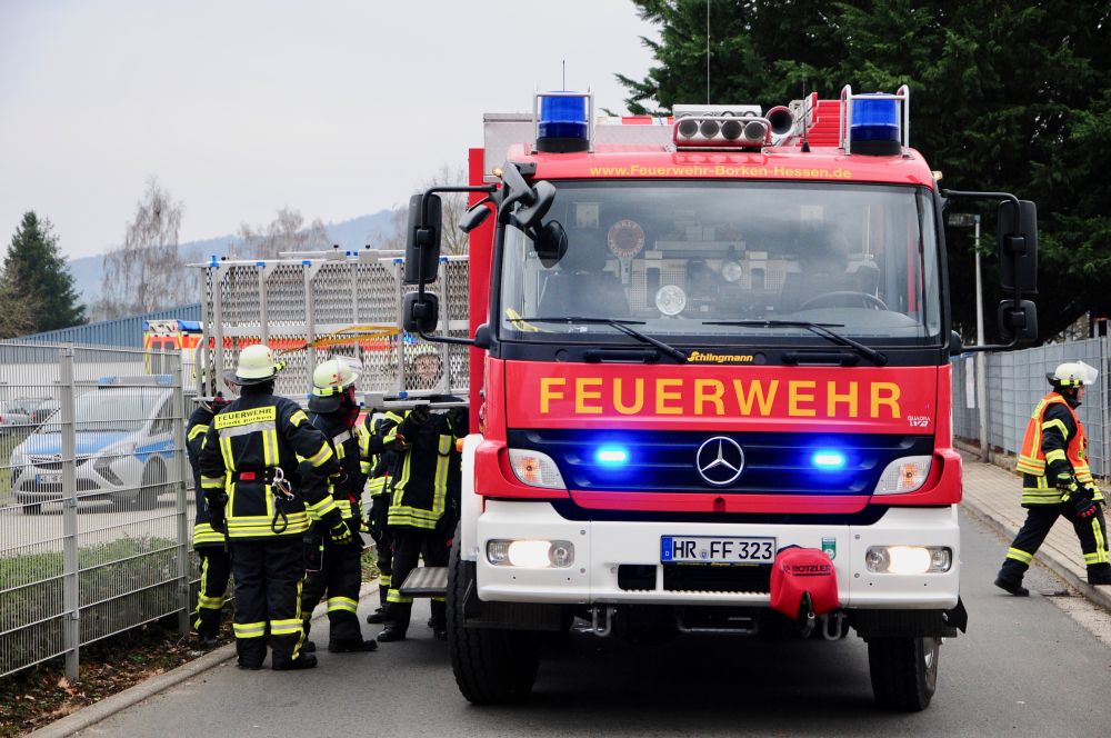 Erst Mitarbeitern eines benachbarten Malerbetriebes viel die Rauchentwicklung auf. Nachdem diese umgehend die Feuerwehr alarmierten, versuchten sie noch mit Feuerlöschern die Flammen zu löschen. Bei Ankunft der ersten Einsatzkräfte hatte das Feuer bereits auf die Werkstatt übergegriffen und Teile der Fassade, des Daches sowie der Innendecke in Mitleidenschaft gezogen. In der Werkstatt befand sich zudem ein neues Fahrzeug. Die Löscharbeiten zeigten aber schnell Erfolg. Mit der Wärmebildkamera und mit Hilfe der Drehleiter suchten die Brandschützer nach weiteren möglichen Glutnestern in der Gebäudedecke. Die gesamte Werkstatt sowie der Betriebshof waren stark verraucht. Die Feuerwehr riegelte im Verlauf die Werkstatt von anderen Räumlichkeiten ab und begann mit der Belüftung. Insgesamt waren 76 Einsatzkräfte, bestehend aus Feuerwehr, Polizei und Rettungsdienst vor Ort im Einsatz. Die Polizei Homberg schätz den Schaden auf 40.000 Euro.