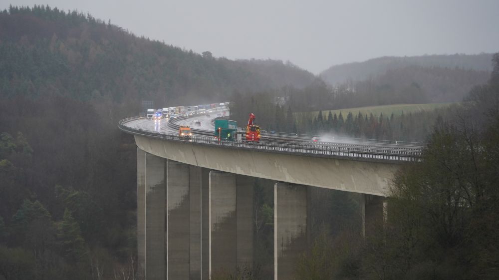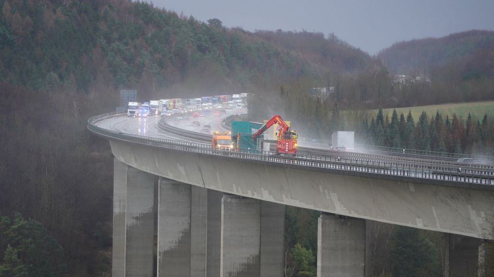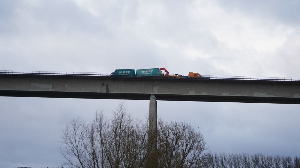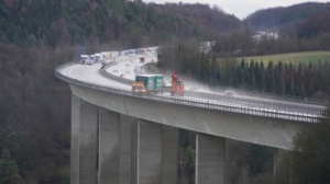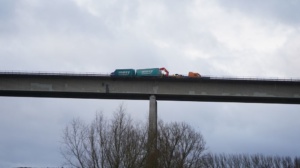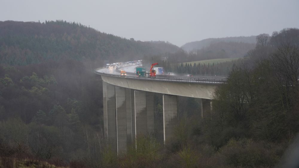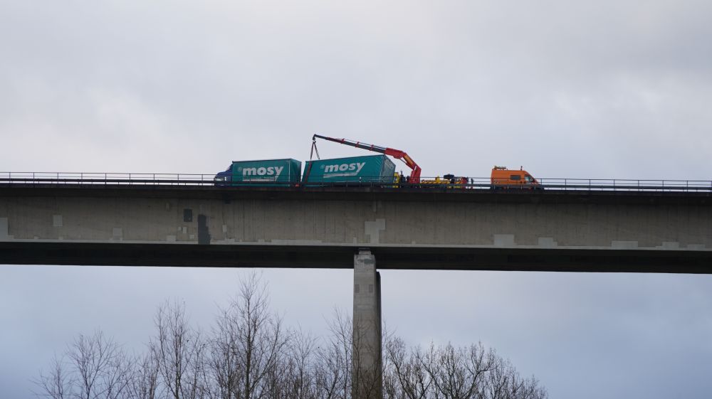 Warburg – Am Montagmorgen, gegen 7:50 Uhr, erfasste eine Wind-Böe auf der Talbrücke Twiste auf der A 44 in Richtung Dortmund einen Lkw, dessen mit Styropor beladener Anhänger dadurch ins Kippen geriet und schließlich umstürzte. Der Fahrer des Lkw blieb glücklicherweise unverletzt. Die A 44 musste in Fahrtrichtung Dortmund für mehrere Stunden voll gesperrt werden.