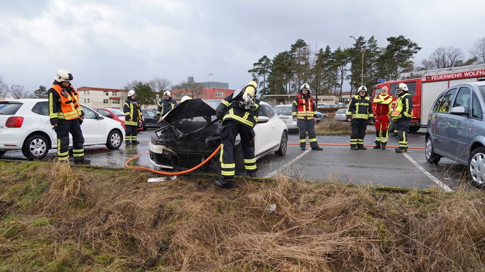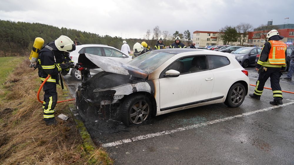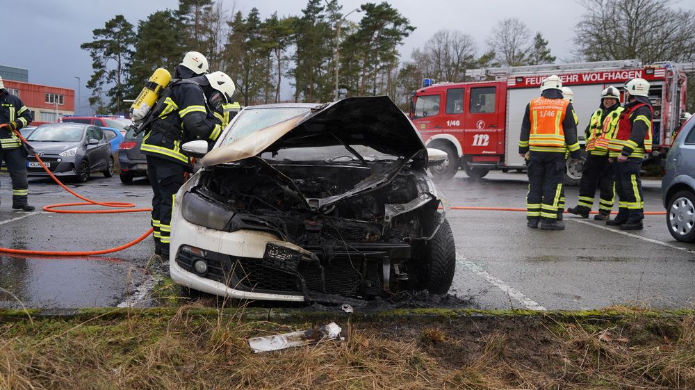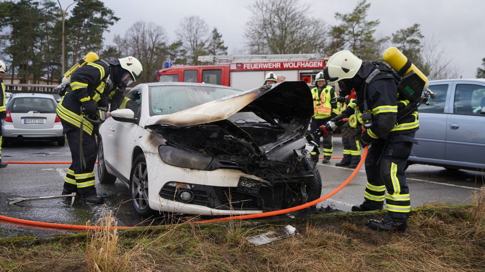 Wolfhagen – Wohl durch einen technischen Defekt, brannte am Montag ein PKW auf dem Parkplatz des Krankenhauses Wolfhagen. Gegen 13.15 Uhr wurde die Feuerwehr alarmiert. Bei Ankunft stand bereits der Motorraum im Vollbrand und drohte auf weitere PKW überzugreifen. Mit den Autoschlüsseln der Besitzer konnten die Kameraden der Feuerwehr Wolfhagen die anderen beteiligten Fahrzeuge in Sicherheit bringen. In wie weit diese beschädigt wurden, muss nun ein Gutachter klären.