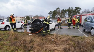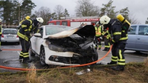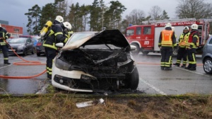 Die 15 Einsatzkräfte konnten das Feuer schnell löschen. An den VW Scirocco entstand ein Totalschaden.