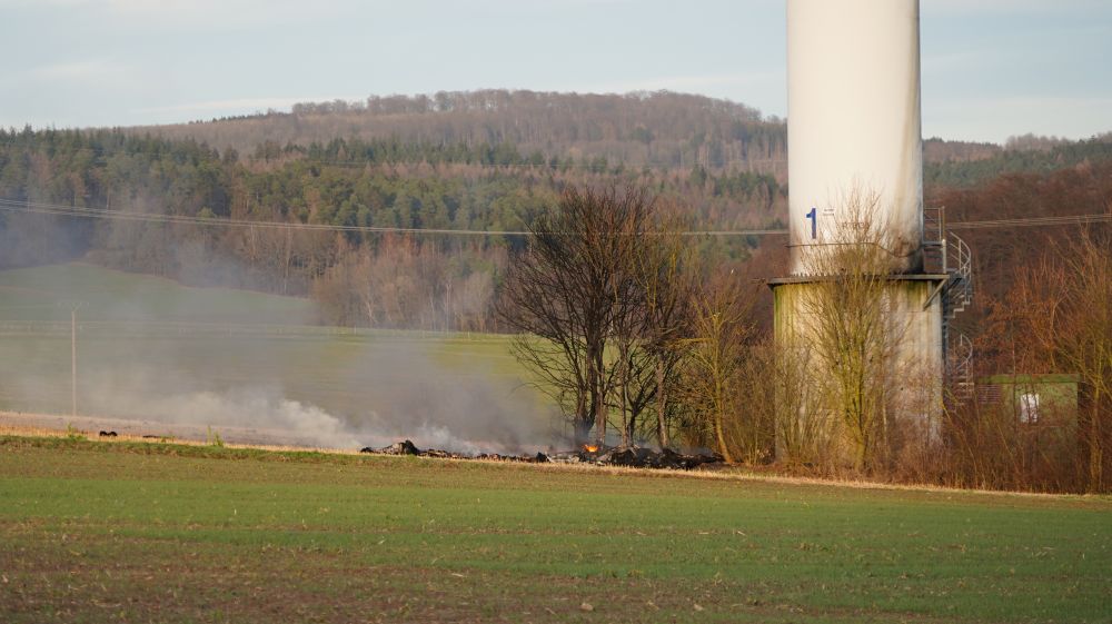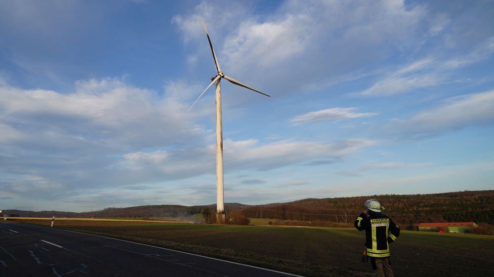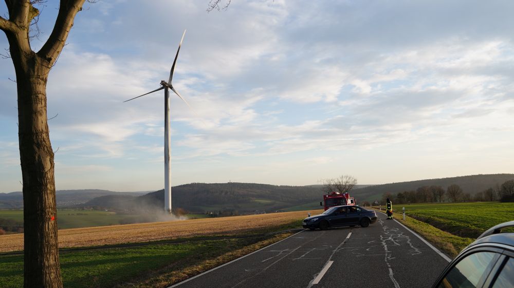 Guxhagen – Am Samstagnachmittag kam es zu einem Brand in einer Windkraftanlage zwischen Körle und Albshausen. Die Feuerwehr die kurz vor 16 Uhr alarmiert wurde, konnte aus Sicherheitsgründen nur den Bereich absichern da immer wieder brennende Teile runter fielen. Löschmaßnahmen sind bei Windkraftanlage immer schwer bis fast unmöglich. Im Einsatz waren rund 50 Einsatzkräfte.
