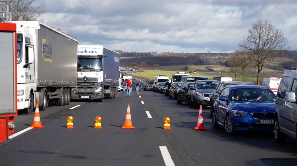 Kassel – Bei dem Unfall am gestrigen Dienstagmittag auf der A 7 bei Staufenberg im Landkreis Göttingen ist ein 61-Jähriger aus Schmalkalden in Thüringen ums Leben gekommen. Der Mann war am Steuer eines Autotransporters gegen 12:10 Uhr auf dem rechten von drei Fahrstreifen in Richtung Süden, kurz vor der hessisch-niedersächsischen Landesgrenze, aus noch unbekannten Gründen auf einen stehenden Lkw aufgefahren, der dort aufgrund eines Rückstaus angehalten hatte.