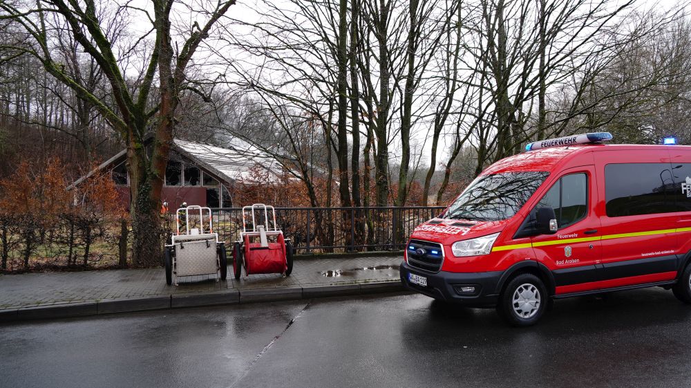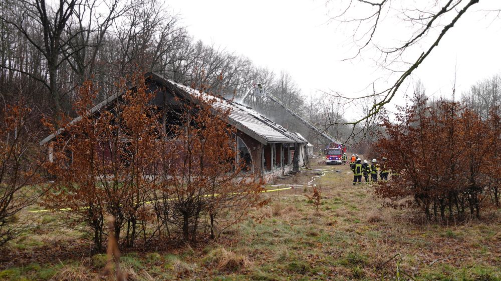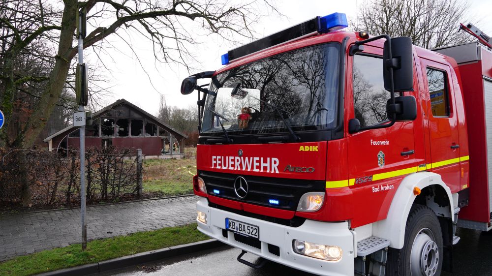 Bad Arolsen – Am Mittwoch wurde die Feuerwehr gegen 10.20 Uhr zum alten Schwimmbad in den Birkenweg alarmiert. Beim Eintreffen der Einsatzkräfte war offenes Feuer zu sehen. Mit zwei C-Rohren wurden die Flammen unter Atemschutz bekämpft. Die Dachhaut wurde mit Hilfe der Drehleiter geöffnet, um die letzten Glutnester ablöschen zu können. Im Einsatz war die Feuerwehr Bad Arolsen und Mengeringhausen mit rund 30 Einsatzkräfte.