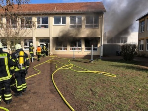 Wolfhagen – Zu einem Brand in der Grundschule Wolfhagen kam es am Freitagvormittag gegen 10.40 Uhr. Die Feuerwehr wurde mit dem Alarmstichwort BF3Y alarmiert (Großschadenslage). Beim Eintreffen der ersten Einsatzkräfte drang dichter schwarzer Rauch aus einem Klassenzimmer. Zu diesem Zeitpunkt war das Gebäude bereits leer. Das Feuer konnte schnell gelöscht werden, es brannte ein Plastikmülleimer im Zimmer.