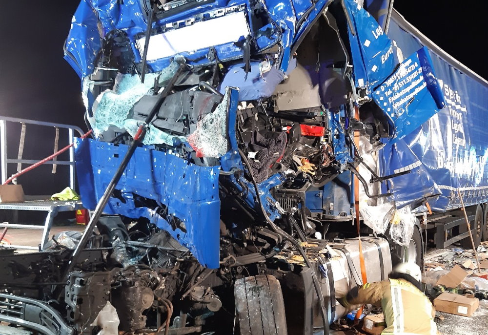 Der 60-jährige Fahrer wurde in seinem Fahrzeug eingeklemmt und verstarb noch an der Unfallstelle. Zur genauen Klärung der Unfallursache wurde ein Gutachter hinzugezogen. Die A7 war noch bis zum Dienstagmittag voll gesperrt.