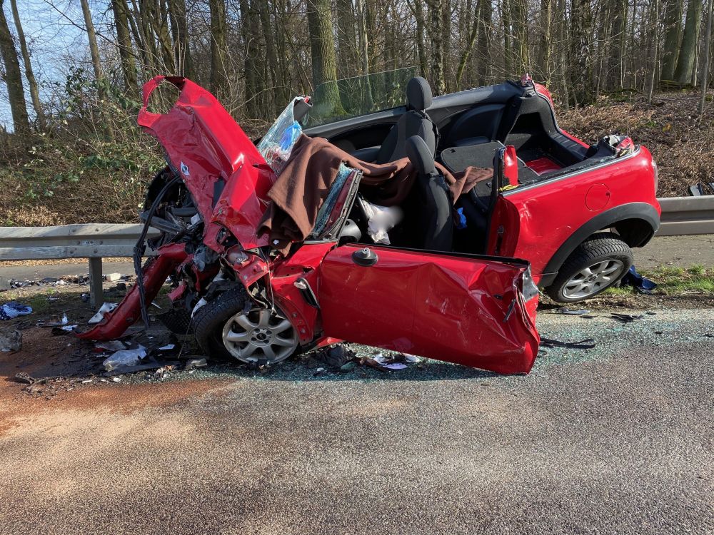 Aus bisher ungeklärten Umständen bremste zunächst ein Fahrzeugführer sein Fahrzeug ab. Ein in der Kolonne nachfolgender Dacia-Fahrer erkannte offenbar die Situation zu spät und krachte seinem Vordermann ins Heck. Ein zur gleichen Zeit entgegenkommender Passat-Fahrer, welcher in Fahrtrichtung Neustadt unterwegs war, wich der Unfallstelle aus, geriet dabei auf die Bankette und schleuderte quer über die Fahrbahn in den Gegenverkehr. Dabei krachte der Mann frontal mit einem aus Richtung Marburg kommenden Mini zusammen. Durch die Wucht des Zusammenpralls wurde der Mini auf die Leitplanke geschleudert und die Fahrzeugführerin in ihrem Wagen eingeklemmt. Die Frau musste von der Feuerwehr aus ihrem völlig zerstörten Mini befreit werden und kam zur weiteren Behandlung in ein Marburger Krankenhaus. Im Passat wurde der Fahrzeugführer schwer verletzt. Seine Beifahrerin wurde, genauso wie die beiden Dacia-Insassen, glücklicherweise nur leicht verletzt. Insgesamt wurden bei dem Verkehrsunfall zwei Personen schwer, drei weitere leicht verletzt. Für die Rekonstruktion des Unfallhergangs wurde ein Gutachter zur Unfallstelle bestellt. Die Bundesstrasse 454 war für mehrere Stunden in beide Richtungen voll gesperrt. Den Gesamtschaden schätzt die Polizei auf einen mittleren fünfstelligen Bereich.