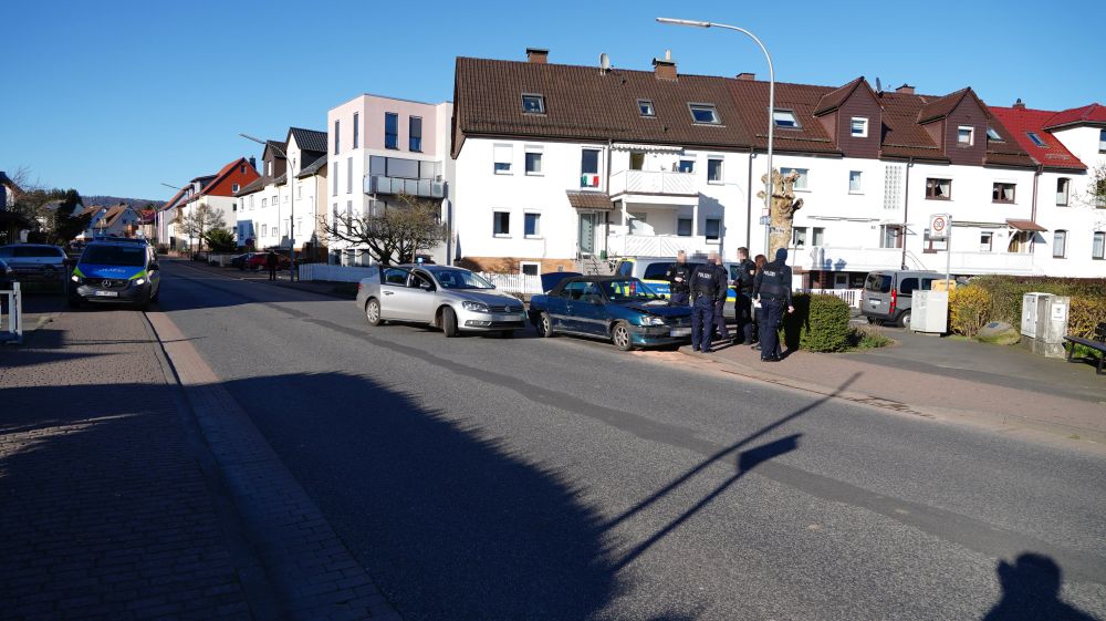 Nachdem die Flüchtigen gestoppt werden konnten, fanden die Polizeibeamten in ihrem Wagen eine Tasche mit rund 230 Gramm Marihuana. Darüber hinaus waren an dem Peugeot gestohlene Kennzeichen angebracht. Die beiden Tatverdächtigen mit albanischer Staatsangehörigkeit müssen sich nun neben Körperverletzung, Urkundenfälschung und Kennzeichendiebstahls auch wegen illegalen Handels mit Betäubungsmitteln verantworten. Der 34-jährige wohnsitzlose Fahrer wird am Montag einem Haftrichter vorgeführt. Wie die aufnehmenden Polizisten berichten, wollten sie den Peugeot gegen 16 Uhr in der Elgershäuser Straße anhalten. Bei Erblicken des Streifenwagens versuchte der Wagen zu flüchten und streifte den Funkwagen der Polizisten. Nachdem der Peugeot anschließend in den hinzugeeilten Zivilwagen gekracht war, konnten die Polizisten die beiden alkoholisierten Männer festnehmen. Ein Atemalkoholtest ergab, dass der Fahrer 1,8 Promille intus hatte, weshalb er sich auf der Dienststelle einer Blutprobe unterziehen musste. Die Polizeibeamten leiteten gegen ihn zusätzlich ein Verfahren wegen Gefährdung des Straßenverkehrs ein. Auch der 35-jährige Beifahrer stand mit 2,4 Promille deutlich unter Alkoholeinfluss, so das Ergebnis eines Tests. Wie sich dann herausstellte, waren die an dem Peugeot angebrachten Kennzeichen erst am Sonntagnachmittag in Baunatal gestohlen worden, ohne dass der Besitzer den Diebstahl an seinem geparkten Seat bis dahin bemerkt hatte. Den Sachschaden an den beiden Polizeiwagen wird auf rund 6.000 Euro geschätzt.