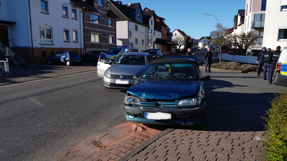 Baunatal – Zwei Männer im Alter von 34 und 35 Jahren versuchten am Sonntagnachmittag in Baunatal mit einem Peugeot vor einer Kontrolle der Polizei zu flüchten. Bei ihrer rücksichtslosen Fahrt streifte der Peugeotfahrer zunächst einen Streifenwagen und krachte anschließend in die Fahrertür eines hinzugeeilten Zivilwagens. Die beiden Polizisten in dem Zivilfahrzeug erlitten dabei leichte Verletzungen.