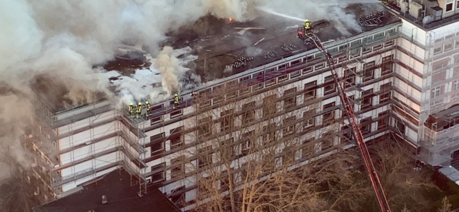 Frankfurt – Durch mehrere Anrufe wegen Rauch auf dem Dach der Fachhochschule wurden am Mittwoch gegen 16.30 Uhr die Einsatzkräfte der Feuerwehr alarmiert und fanden beim Eintreffen die Dachkonstruktion des Gebäude 1 der Fachhochschule Frankfurt in dichten Rauch gehüllt vor. Die Erkundungen ergaben, dass die hölzerne Dachkonstruktion über der Betondecke des 4.OG, im Innern in voller Ausdehnung brannte. Da zunächst von Einsturzgefahr des Daches ausgegangen werden musste, konnten die Löscharbeiten nur von außen über die Drehleiter begonnen werden.